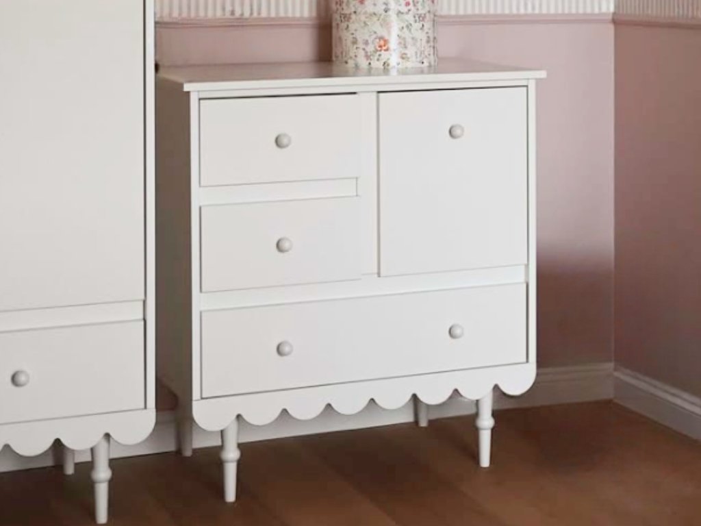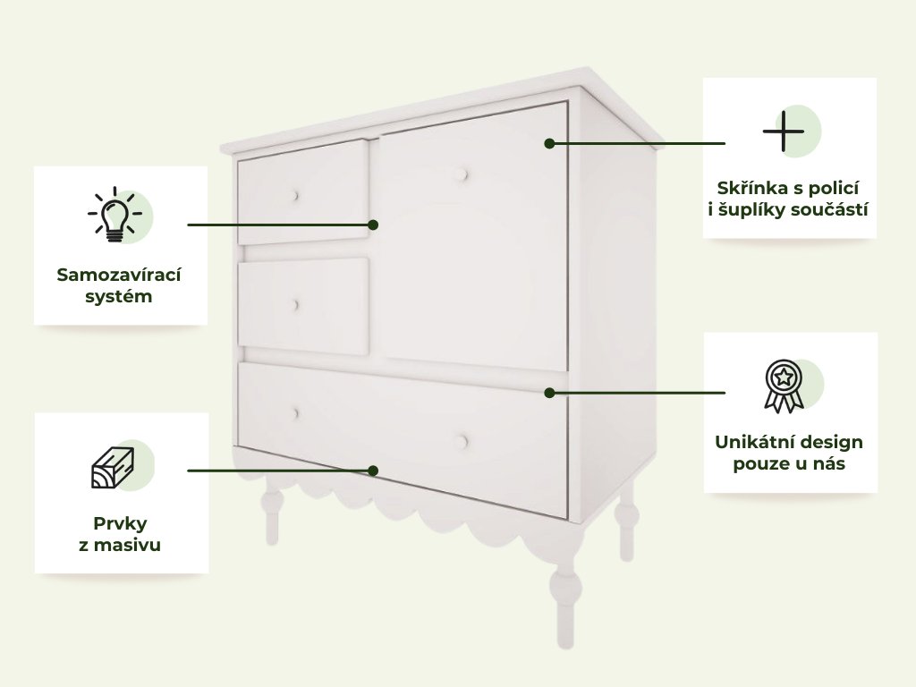 Nízká úložná komoda do dětského pokoje BABUSHKA bílá