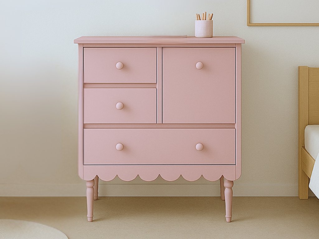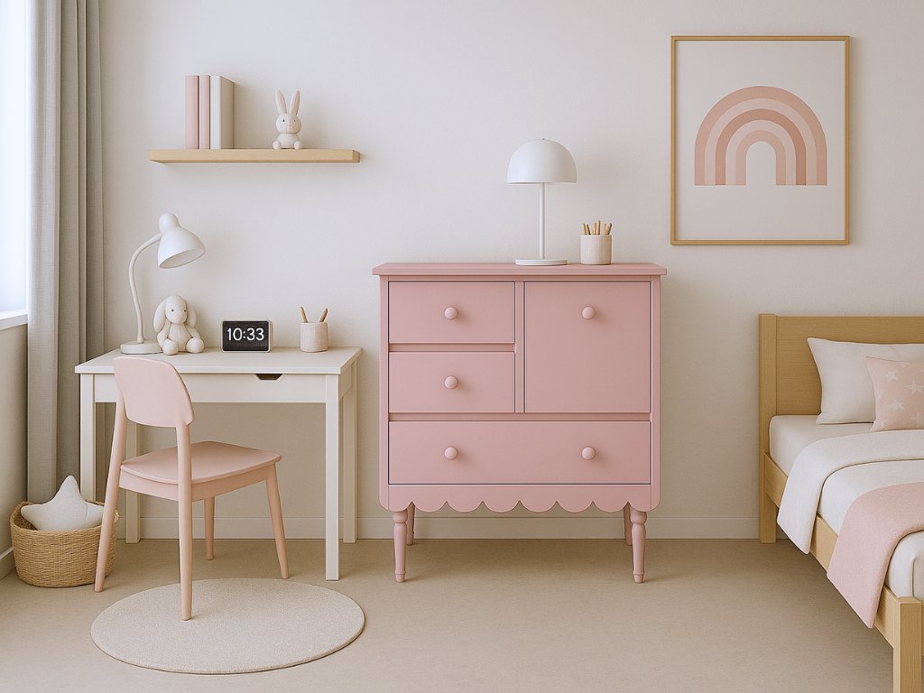 Nízká úložná komoda do dětského pokoje BABUSHKA korálová