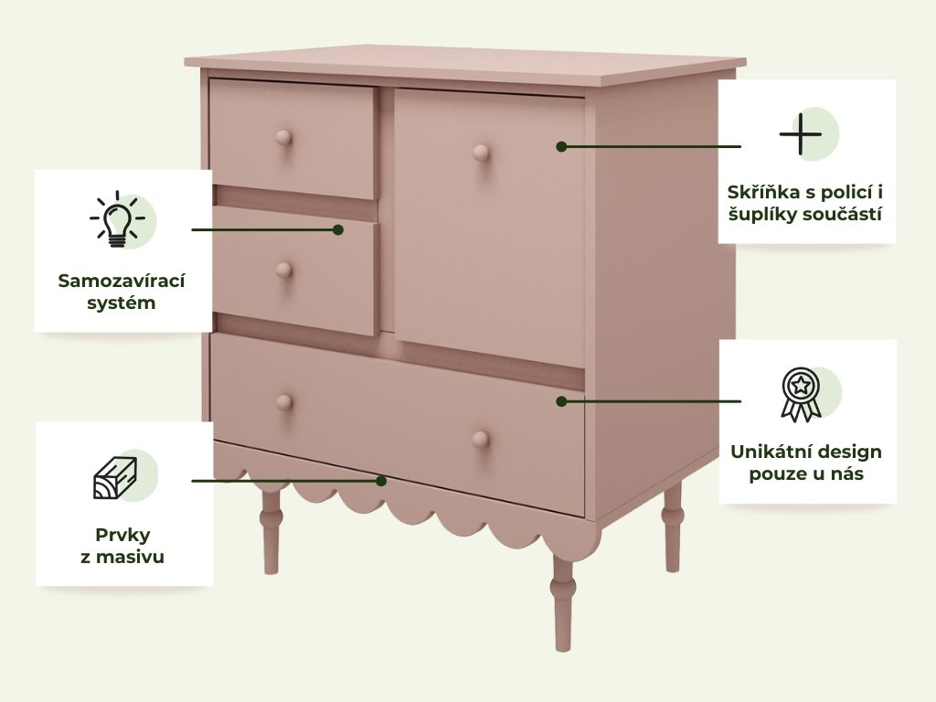 | Příslušenství k dokoupení: | Přebalovací pult na komodu BABUSHKA |