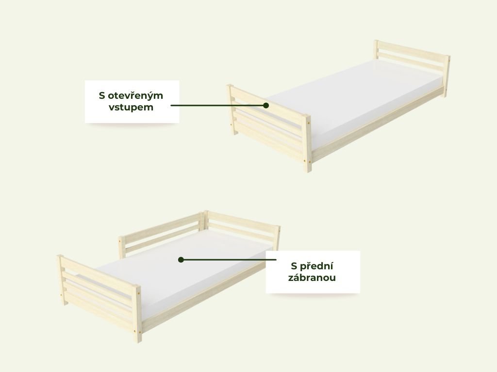 Nízké dětské jednolůžko ze dřeva TULY se dvěma čely