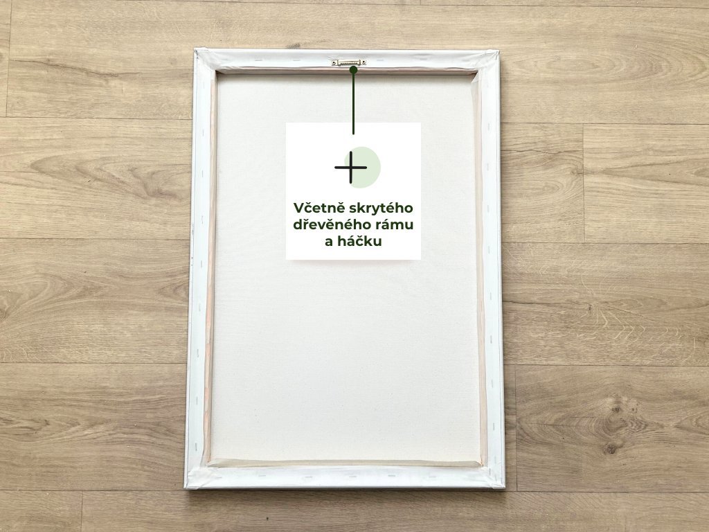 | Rám: | neviditelný "blind" rám z borovicového dřeva, tloušťka 2 cm |