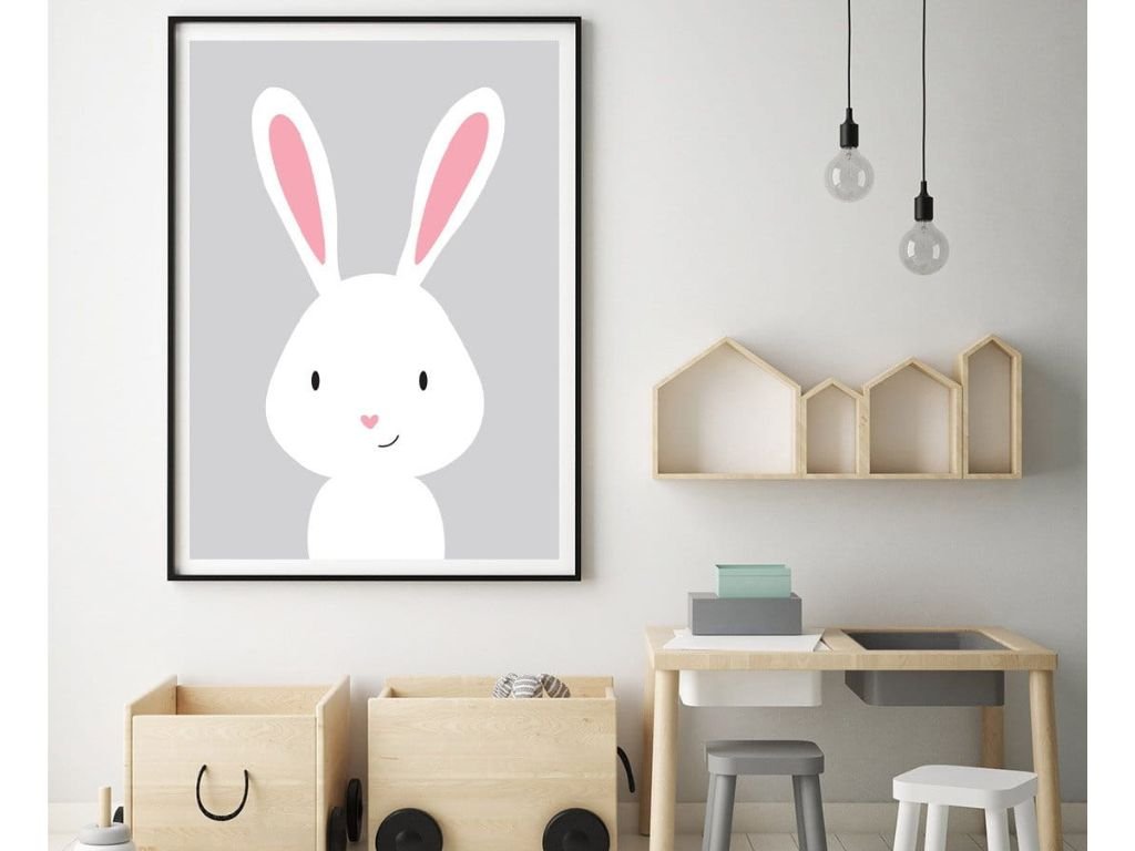 Obraz na stěnu KRÁLÍK do dětského pokoje ŠEDÝ