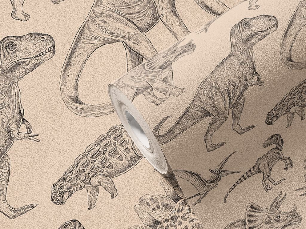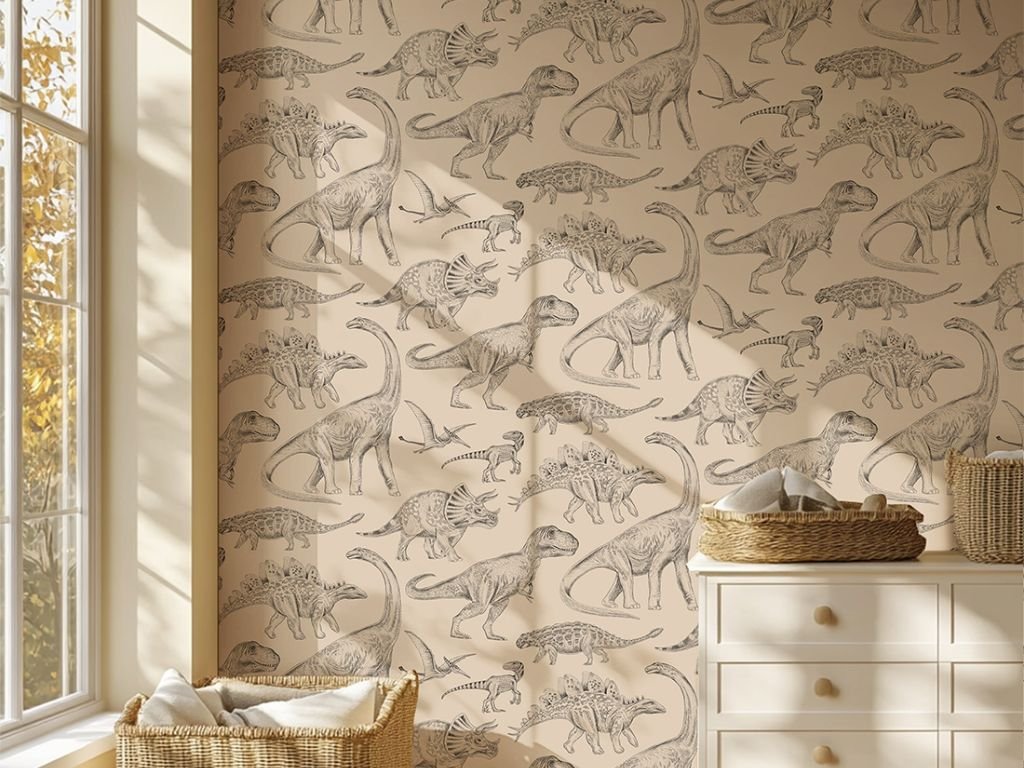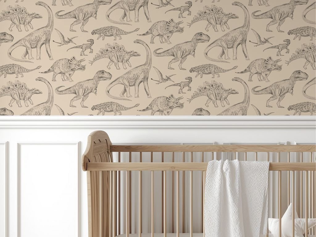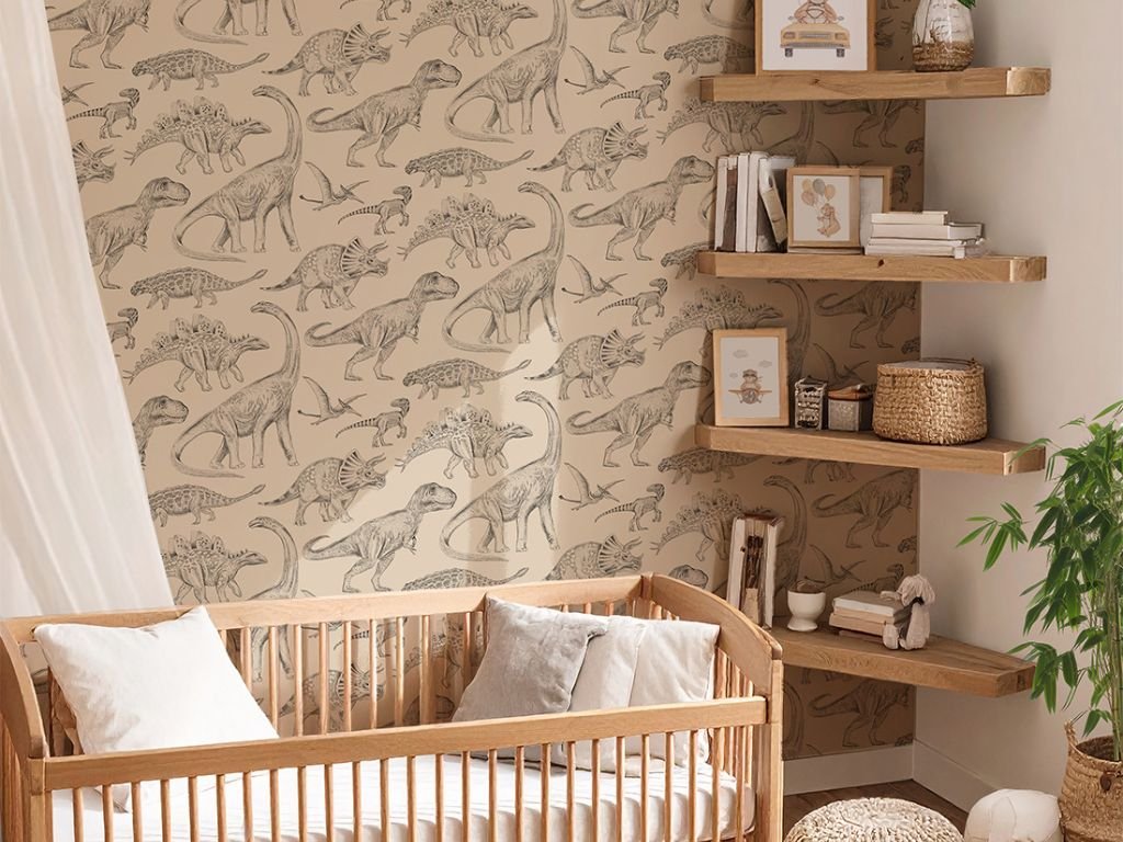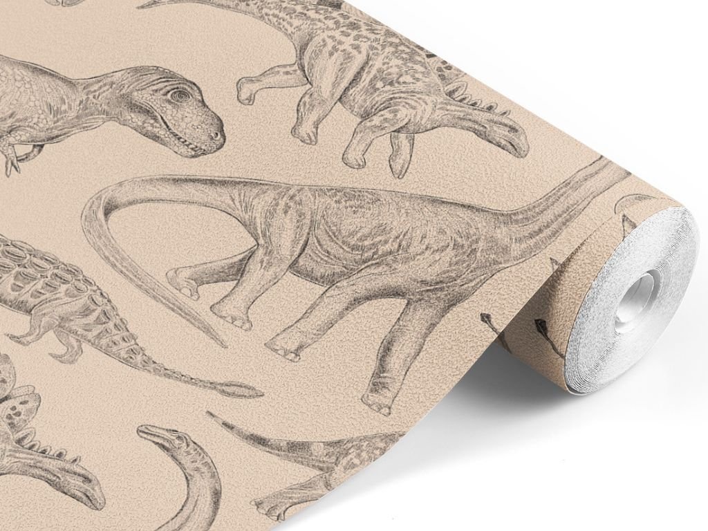 Omyvatelná dětská tapeta na zeď DINOSAUŘI hnědá