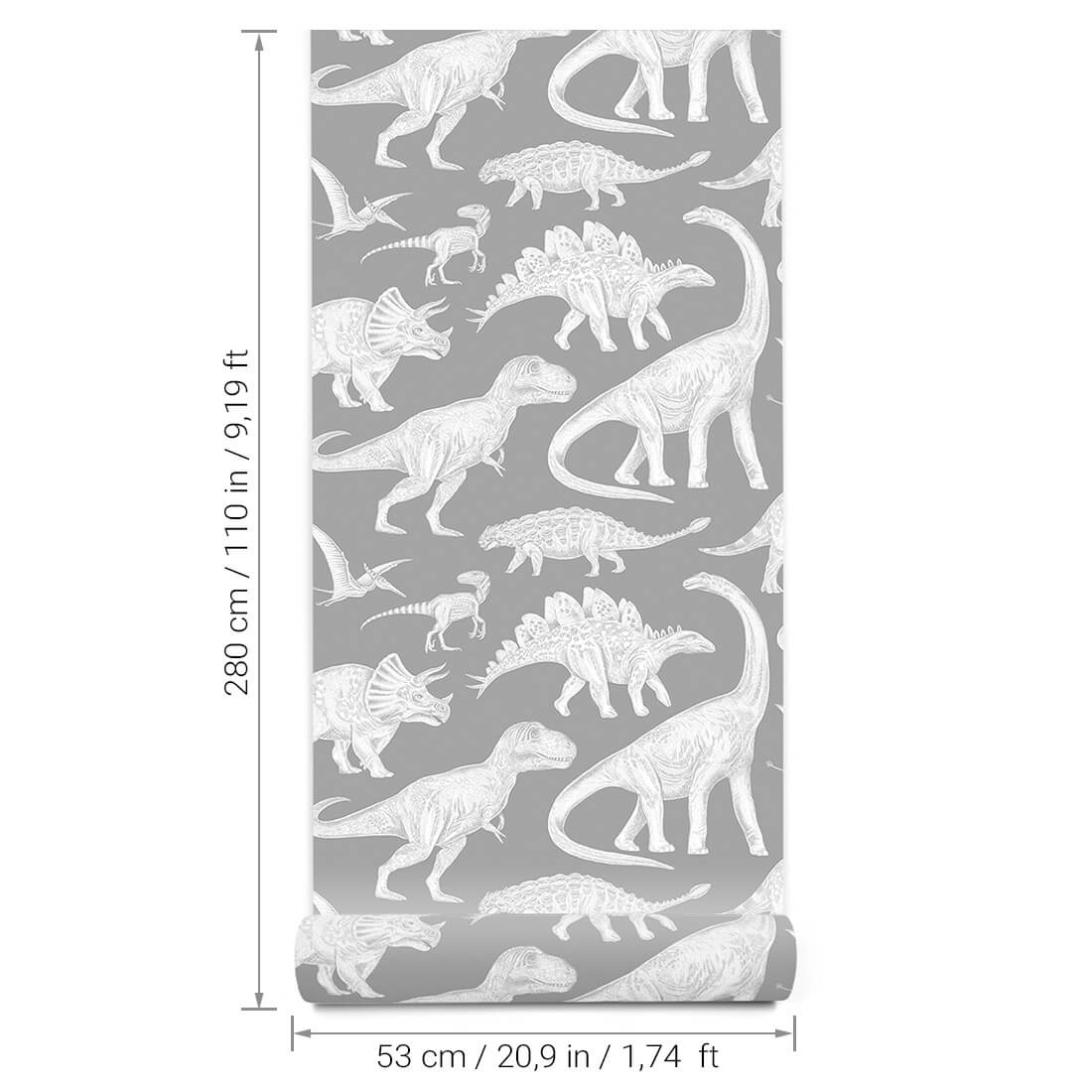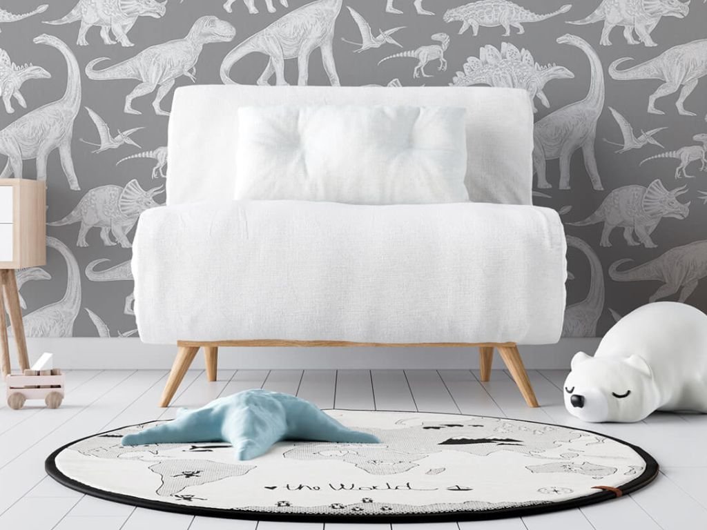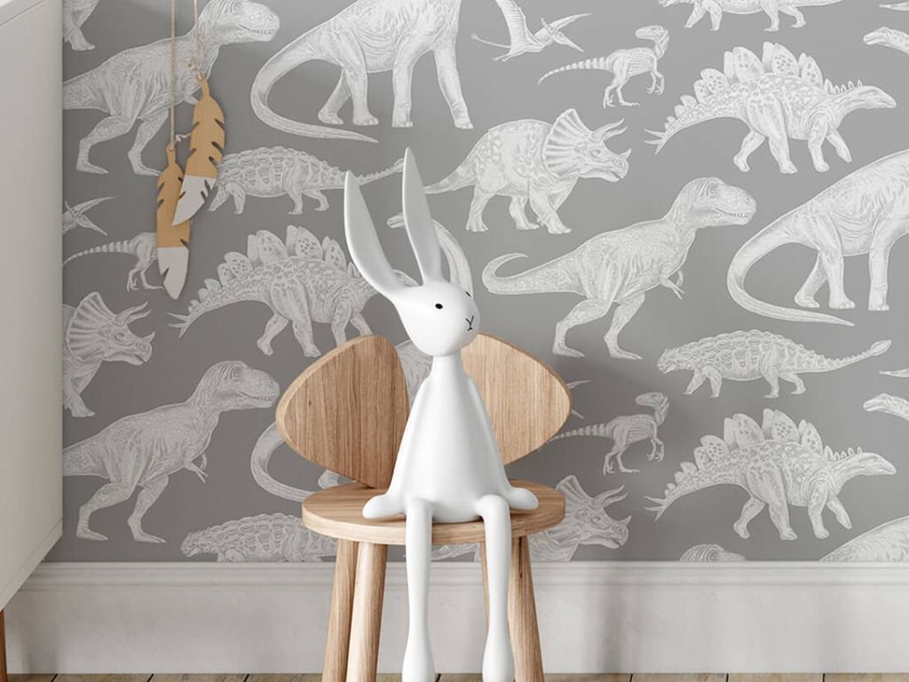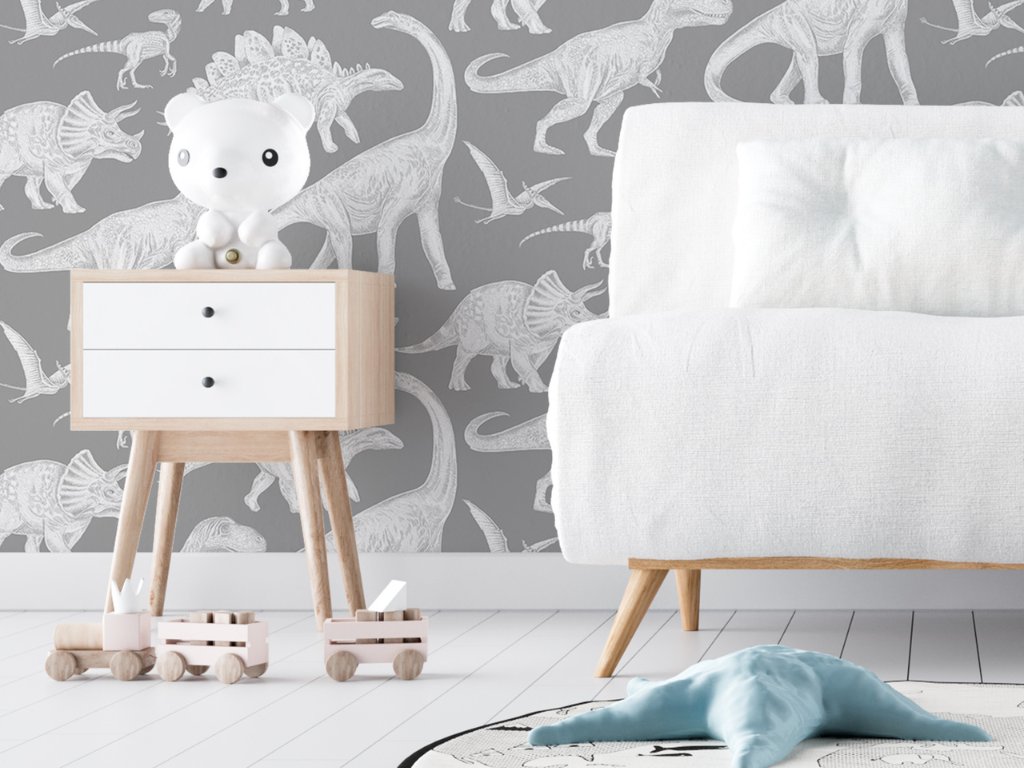 Omyvatelná dětská tapeta na zeď DINOSAUŘI šedá