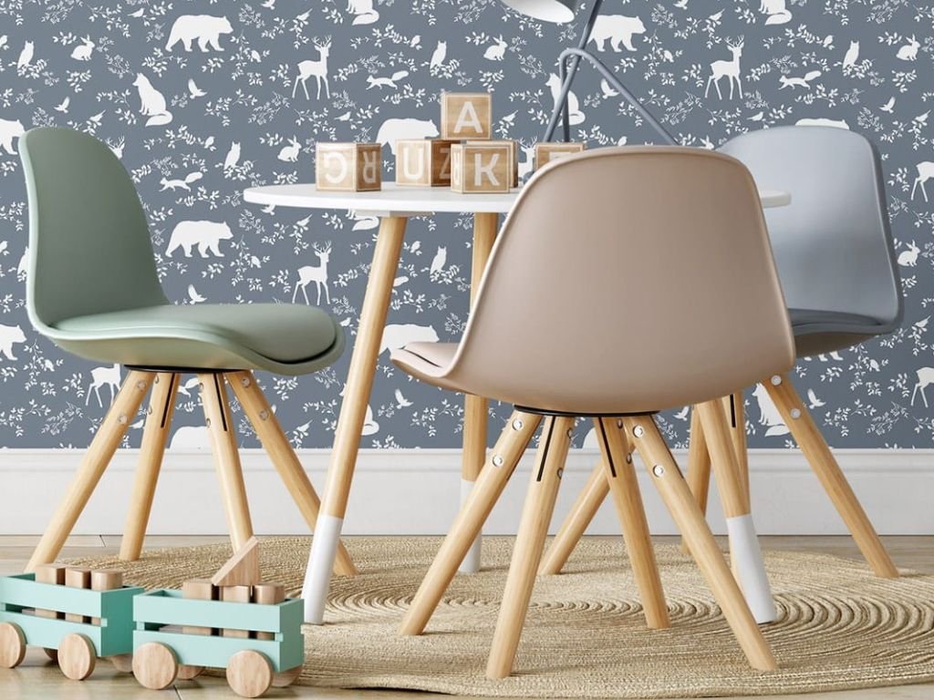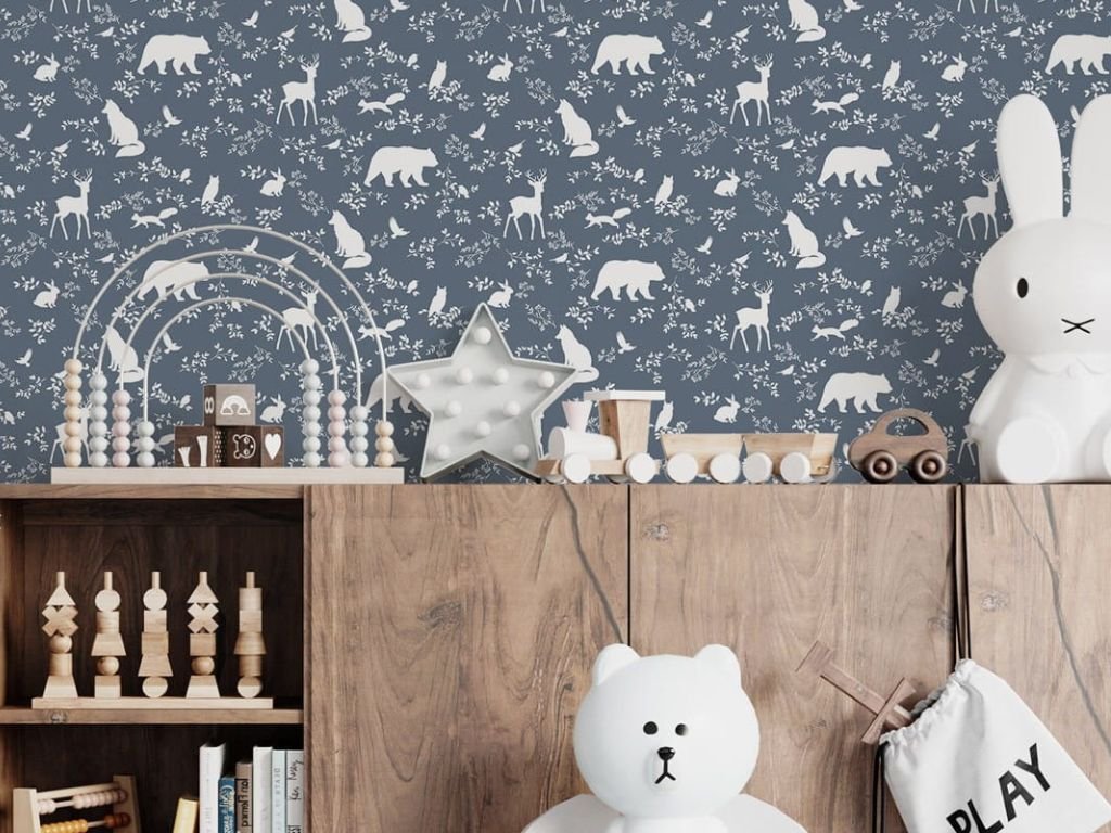 Omyvatelná nástěnná tapeta LESNÍ ZVÍŘÁTKA modrá