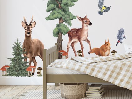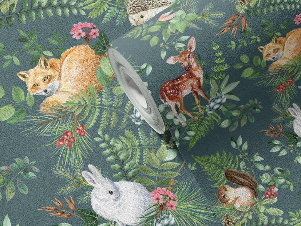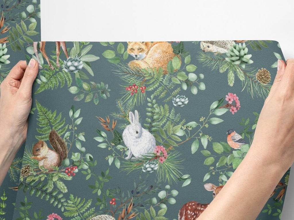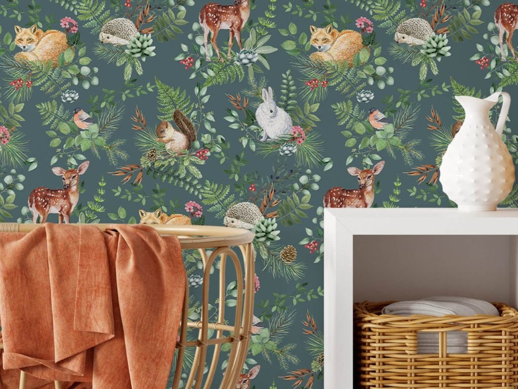 Omyvatelná tapeta do dětského pokoje ZVÍŘÁTKA V LESE zelená