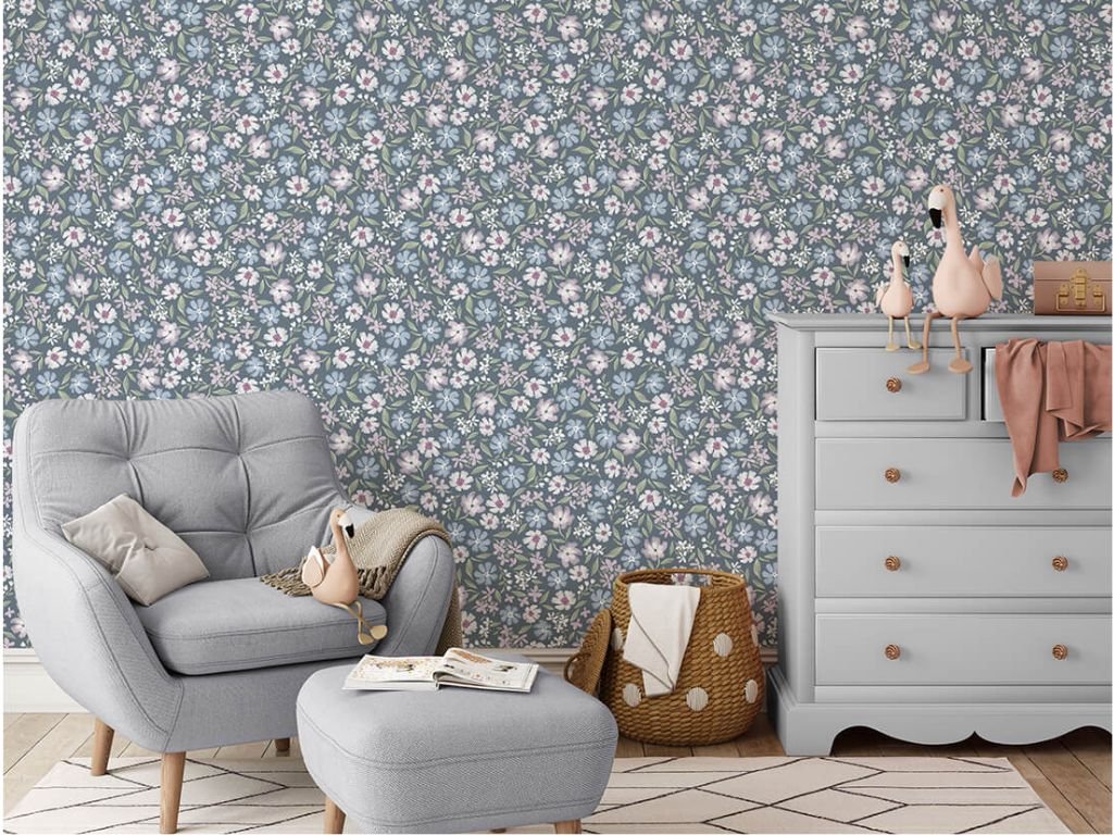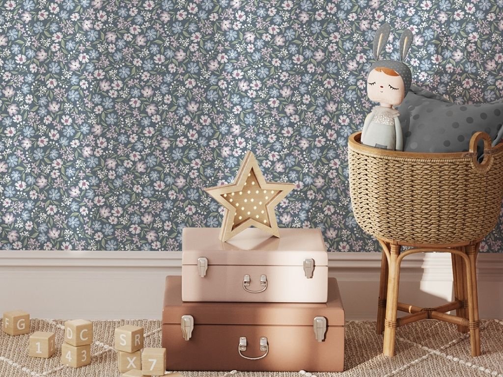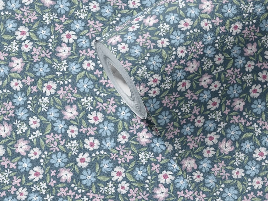 Omyvatelná tapeta na zeď KVĚTINY modrá