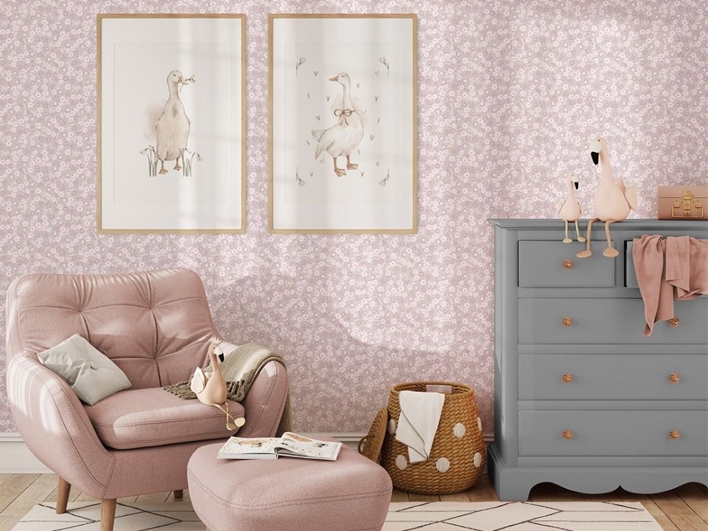 Omyvatelná tapeta na zeď KVĚTINY růžová