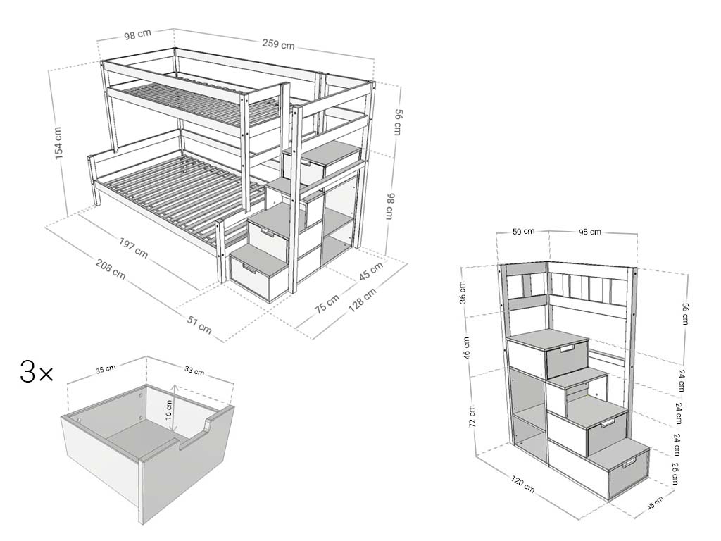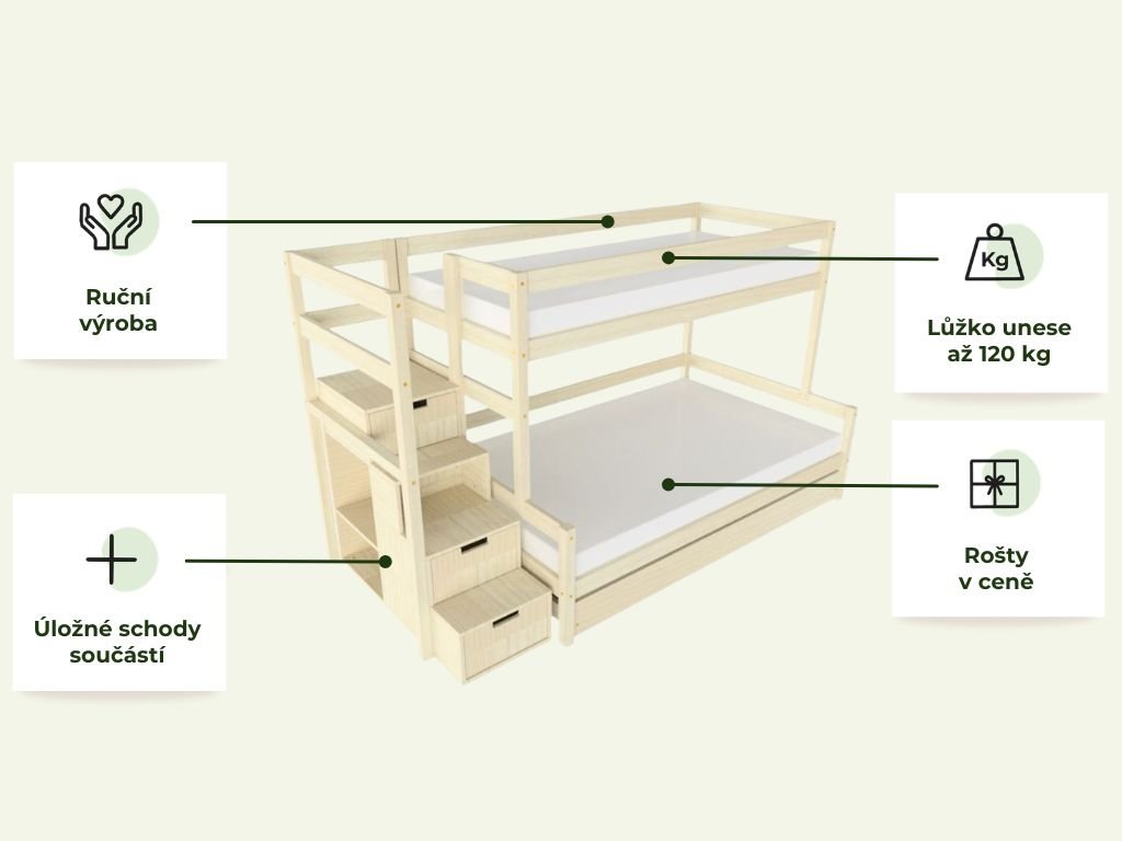 Patrová postel LUCKY s úložnými schody 90x200, 120x200 cm