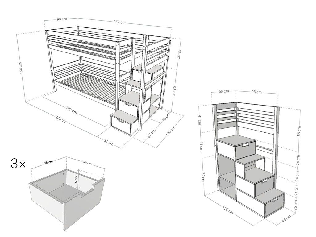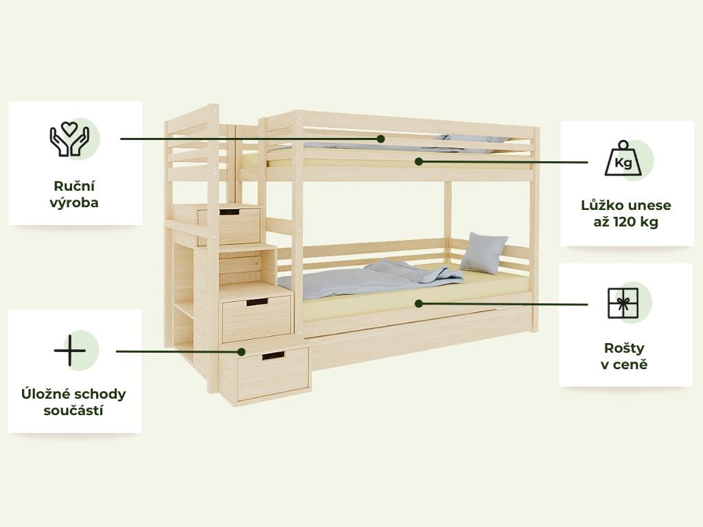 | Vlastnosti produktů: | S úložným prostorem, Se šuplíkem, S přistýlkou, Se schůdky |