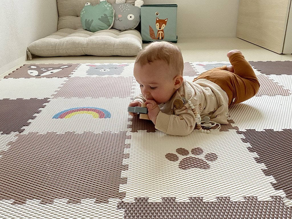 | Vlastnosti materiálu: | certifikovaný, zdravotně nezávadný, vhodný pro děti od narození, díky velmi jemné struktuře je zajištěna nenasákavost, vysoká pevnost, odolnost materiálu a především dlouhá životnost, díky unikátnímu systému zámků se puzzle nerozjíždí |