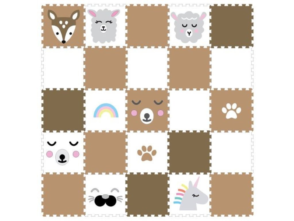 Pěnová hrací podlaha puzzle 25 dílů HNĚDO-BÍLÁ se zvířátky