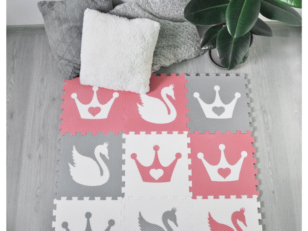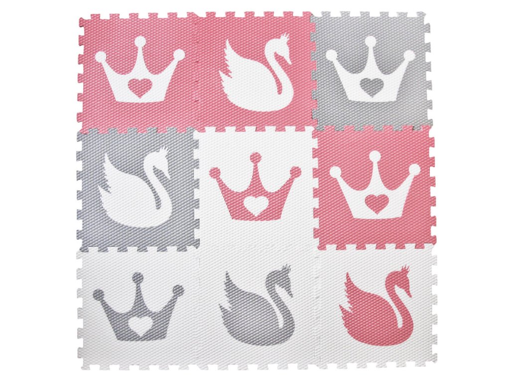 | Sada obsahuje: | 9 pěnových puzzle podložek (2 růžové puzzle s bílou korunkou, 1 růžová puzzle s bílou labutí, 1 světle šedá puzzle s bílou korunkou, 1 světle šedá puzzle s bílou labutí, 1 bílá puzzle s růžovou korunkou, 1 bílá puzzle se světle šedou korunkou, 1 bílá puzzle se světle šedou labutí, 1 bílá puzzle s růžovou labutí) |