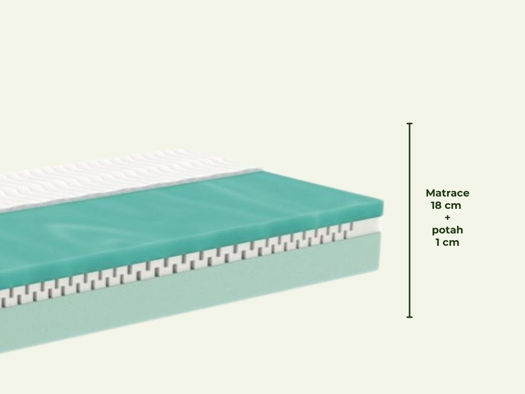 | Výška matrace včetně potahu: | 18 cm + cca 1 cm |
