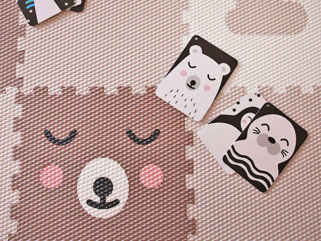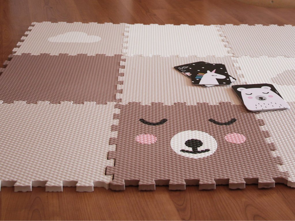 | Sada obsahuje: | 9 pěnových puzzle podložek (1 bílá puzzle, 4 krémové puzzle, 1 hnědá puzzle, 1 krémová puzzle s bílým mráčkem, 1 bílá puzzle s krémovým mráčkem, 1 hnědý medvěd) |