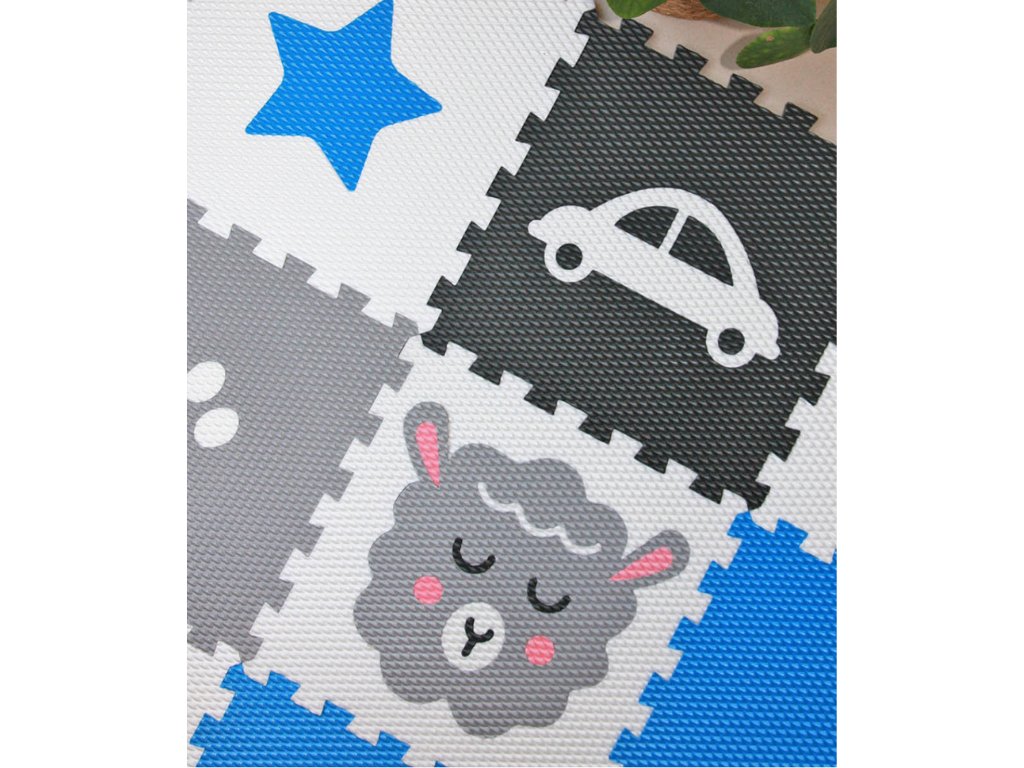 | Sada obsahuje: | 16 pěnových puzzle podložek (3 bílé puzzle, 2 modré puzzle, 1 světle šedá puzzle, 2 modré puzzle s bílou hvězdou, 2 bílé puzzle s modrou hvězdou, 1 bílý beránek, 1 světle šedý beránek, 1 černá puzzle s bílý autem, 1 bílá puzzle s černým autem, 1 světle šedá puzzle s bílou tlapkou, 1 bílá puzzle se světle šedou tlapkou) |
