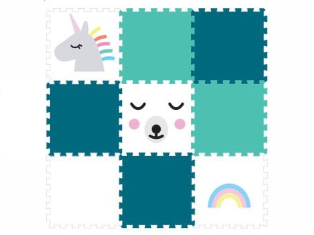 | Sada obsahuje: | 9 pěnových puzzle podložek (2 jarní zelené puzzle, 3 tyrkysové puzzle, 1 bílá puzzle, 1 bílá duha, 1 bílý medvídek, 1 bílý jednorožec) |
