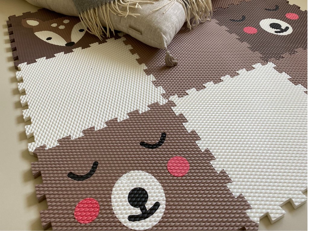| Vlastnosti materiálu: | certifikovaný, zdravotně nezávadný, vhodný pro děti od narození, díky velmi jemné struktuře je zajištěna nenasákavost, vysoká pevnost, odolnost materiálu a především dlouhá životnost, díky unikátnímu systému zámků se puzzle nerozjíždí |