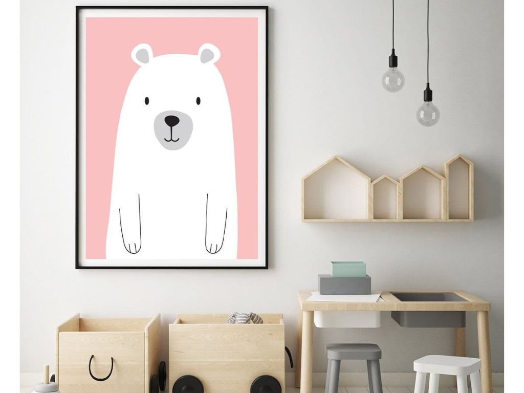 Plakát LEDNÍ MEDVĚD do dětského pokoje RŮŽOVÝ