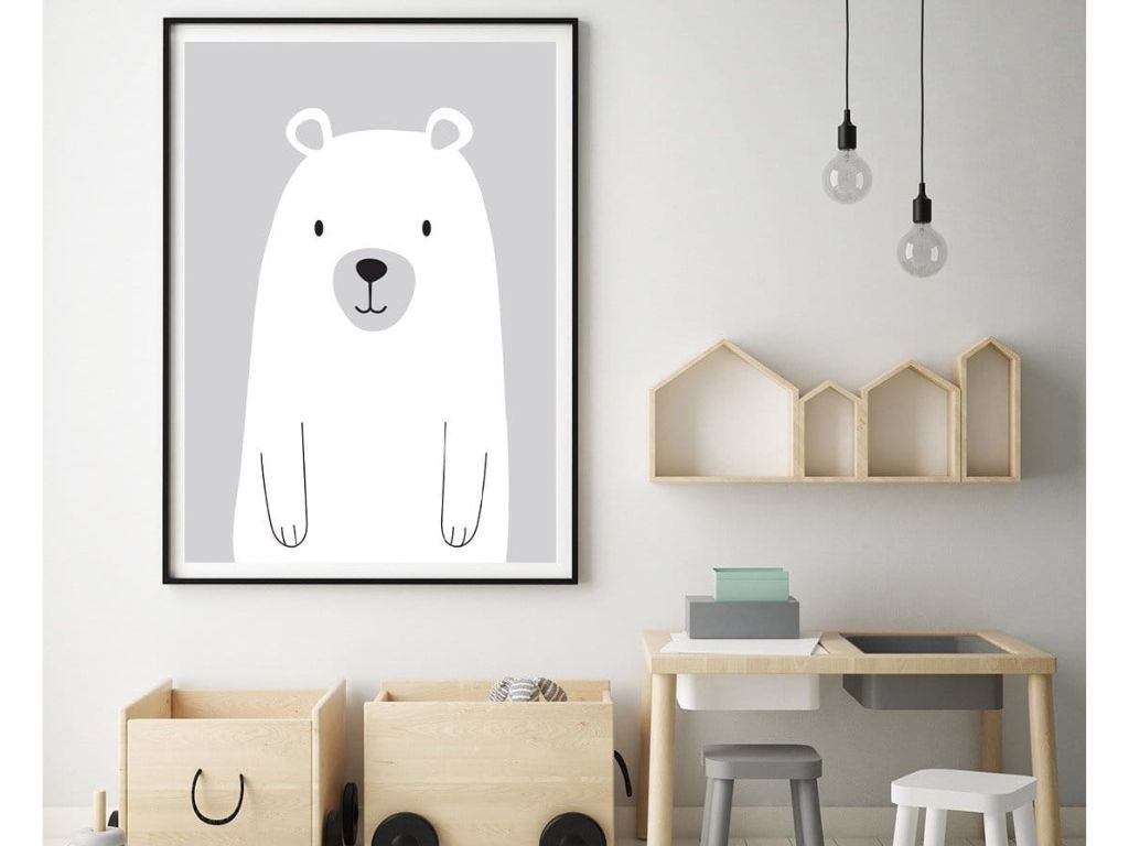 Plakát LEDNÍ MEDVĚD do dětského pokoje ŠEDÝ