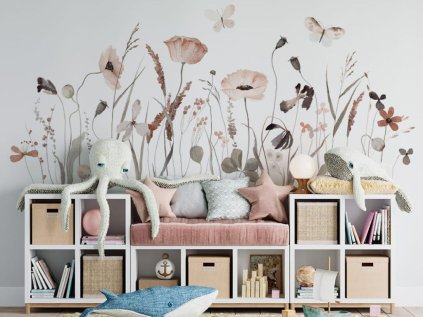 Samolepící nástěnný metr DIVOKÉ KVĚTINY do dětského pokoje