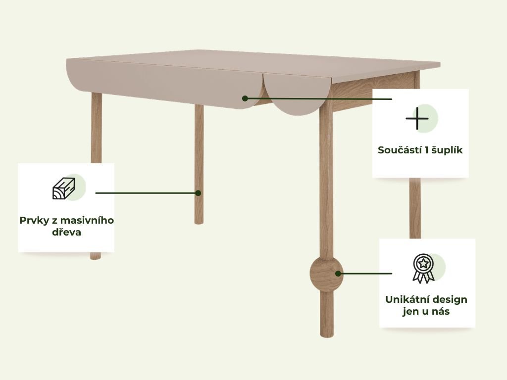 Psací stůl doporučujeme doplnit o ergonomickou židli pro pohodlné a bezpečné sezení vašeho dítka.
