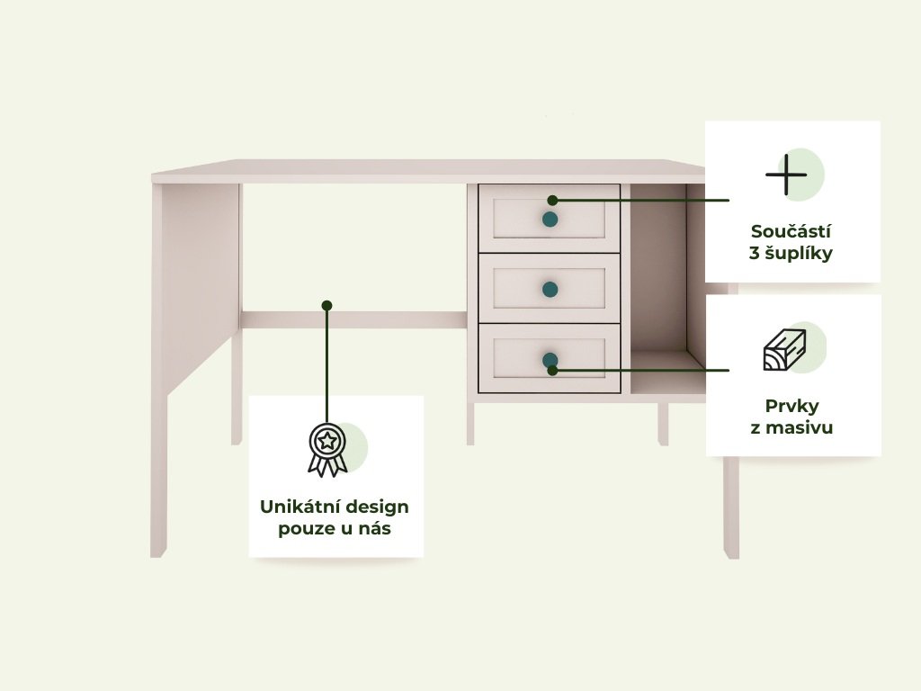 Psací stůl se šuplíky do dětského pokoje VINTAGE kašmírový
