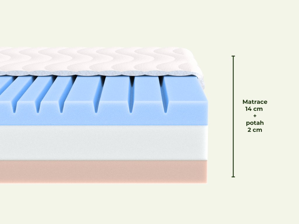 | Výška matrace včetně potahu: | 14 cm + cca 1-2 cm |