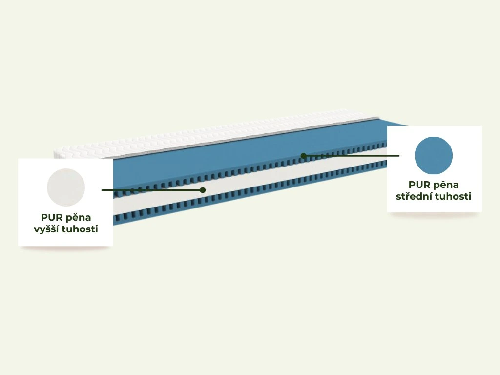 | Horní vrstva: | PUR pěna T2837 střední tuhosti |