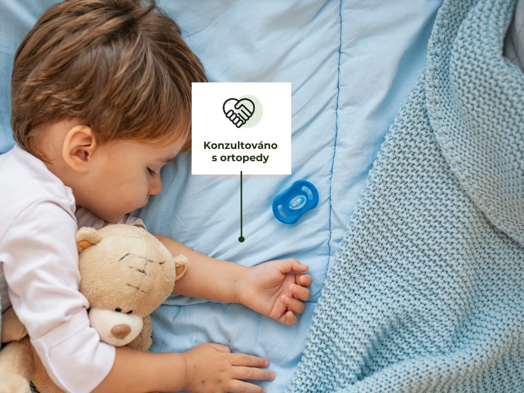 PUR pěna udrží svůj tvar, i když dítko během snů "cestuje" po posteli. Antialergenní pěny spojujeme lepidlem na přírodní bázi.