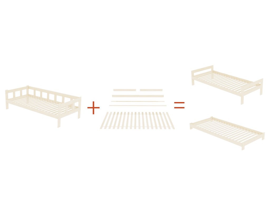 Přestavte jednolůžkovou postel se zábranou pomocí sady DOUBLE na 2 samostatná klasická jednolůžka.