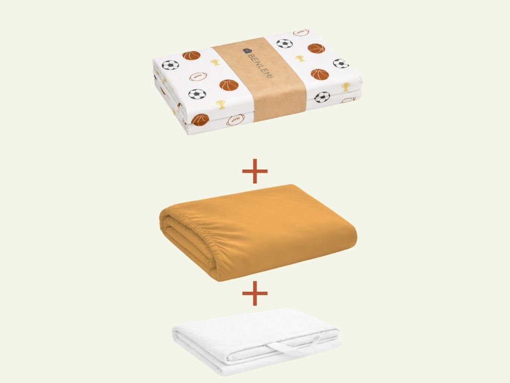 | Sada obsahuje: | 1x povlečení na polštář 70x90 cm a přikrývku 140x200 cm , 1x hořčicové prostěradlo, 1x chránič matrace |