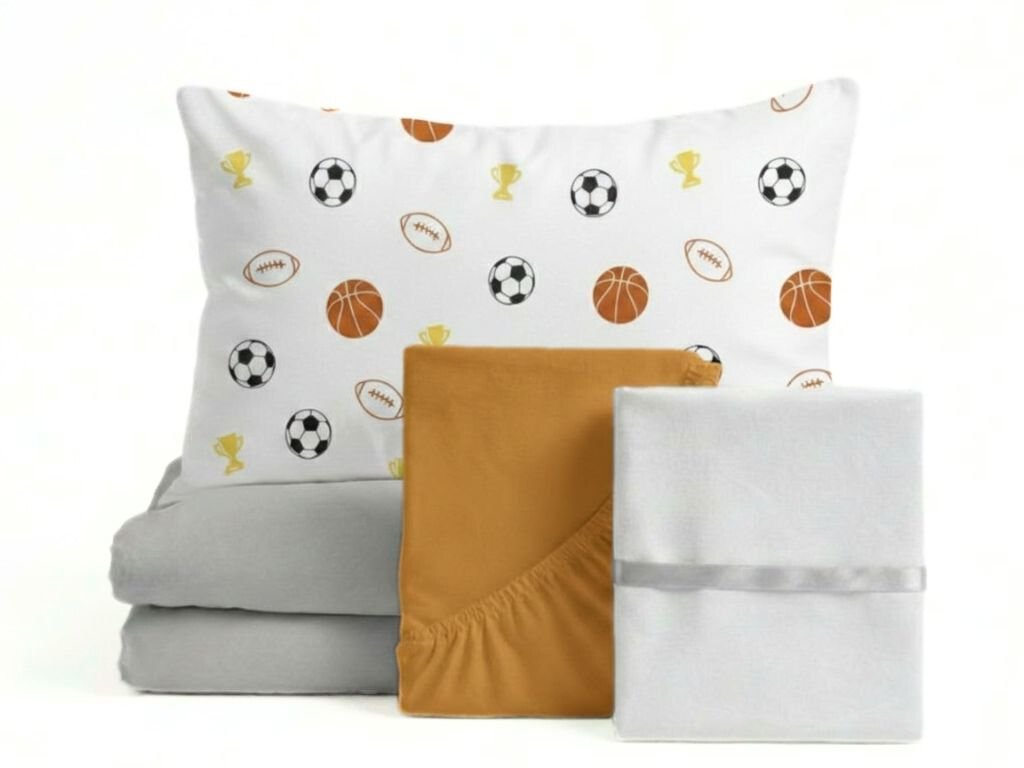 Sada lůžkovin: bavlněné povlečení MÍČE + prostěradlo hořčicové jersey + chránič matrace