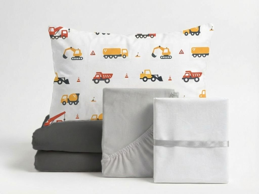 | Sada obsahuje: | 1x povlečení na polštář 70x90 cm a přikrývku 140x200 cm , 1x světle šedé prostěradlo, 1x chránič matrace |