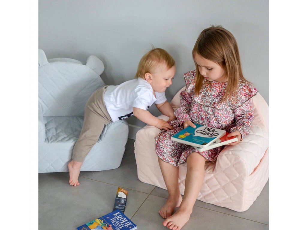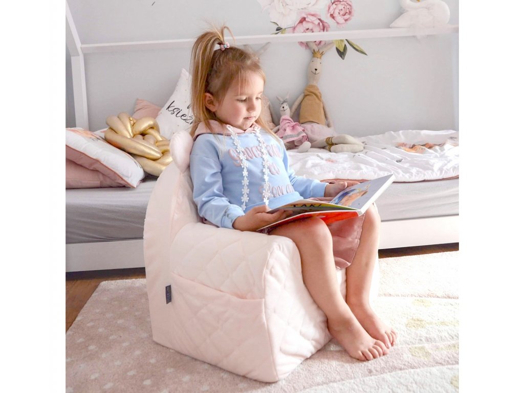 Sametové dětské křesílko s kapsami RŮŽOVÁ