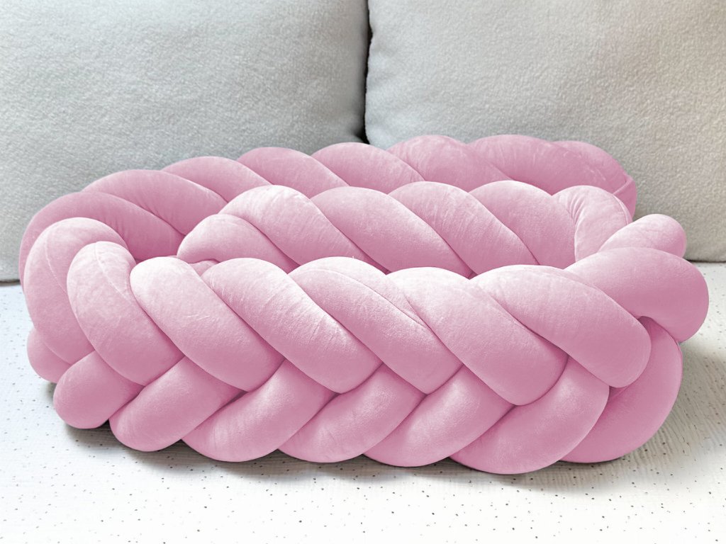 Sametový mantinel pletený do copu z 5 pramenů, 420 cm SVĚTLE RŮŽOVÝ