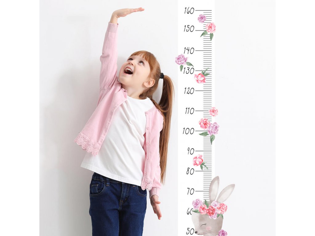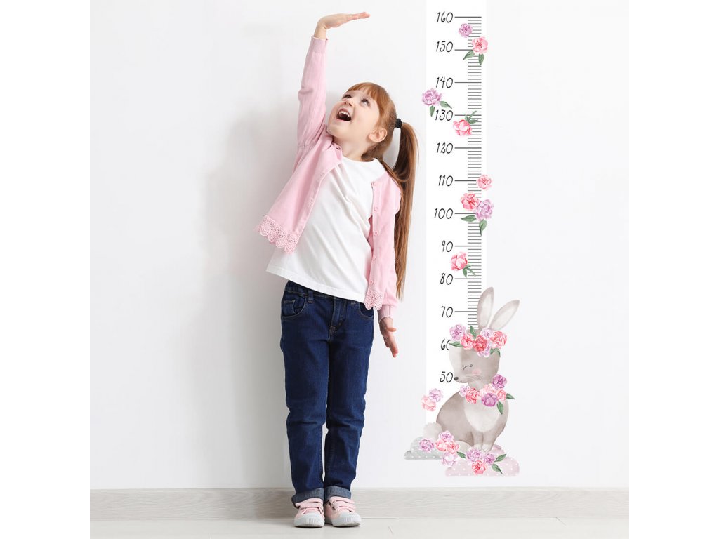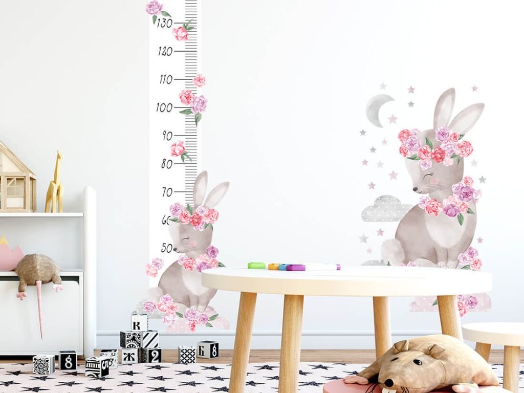 Samolepící metr na zeď KRÁLÍČEK do dětského pokoje RŮŽOVÝ