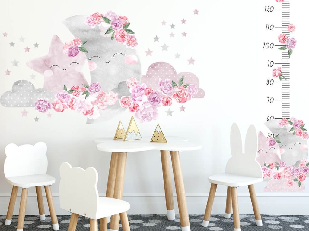 Samolepící nástěnný metr MĚSÍC do dětského pokoje RŮŽOVÝ