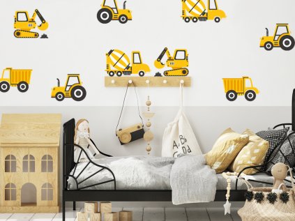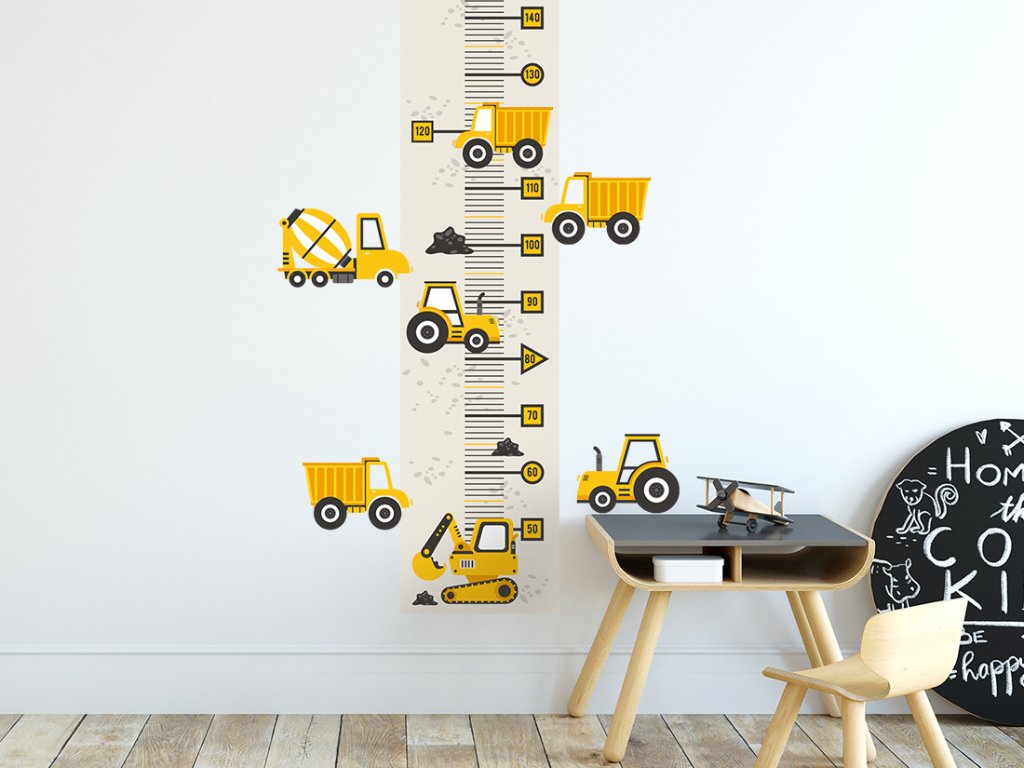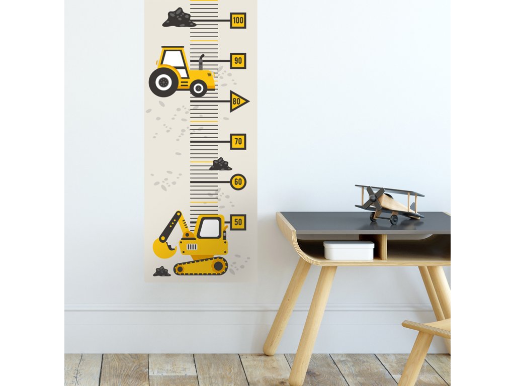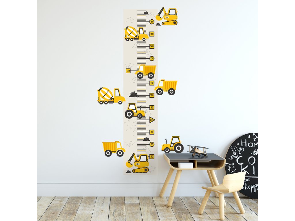 Samolepící nástěnný metr STAVEBNÍ STROJE žlutý