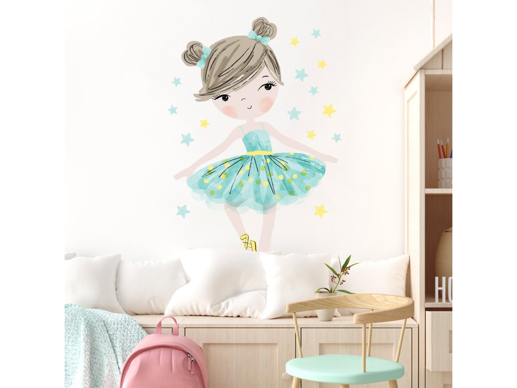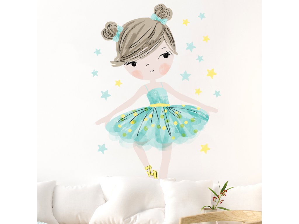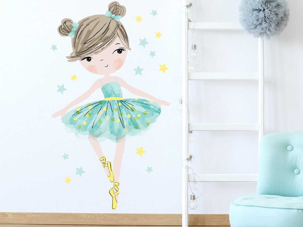 Samolepka na zeď BALETKA do dětského pokoje modrá