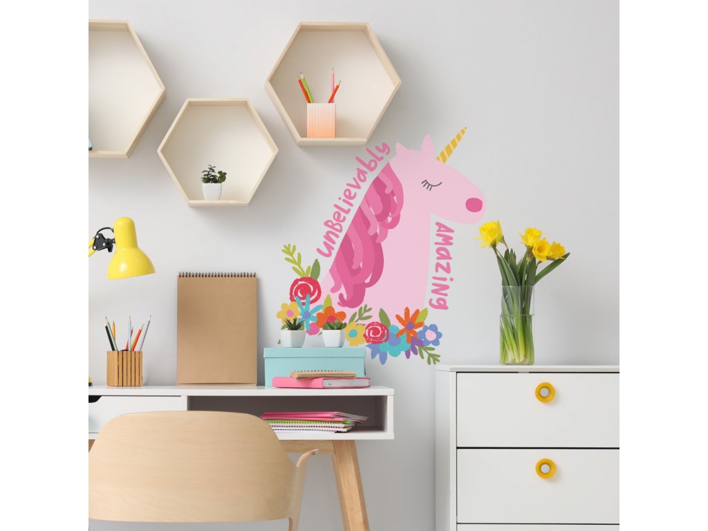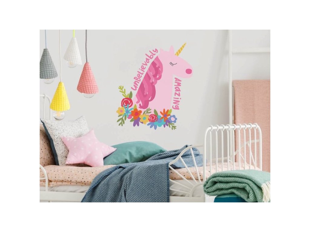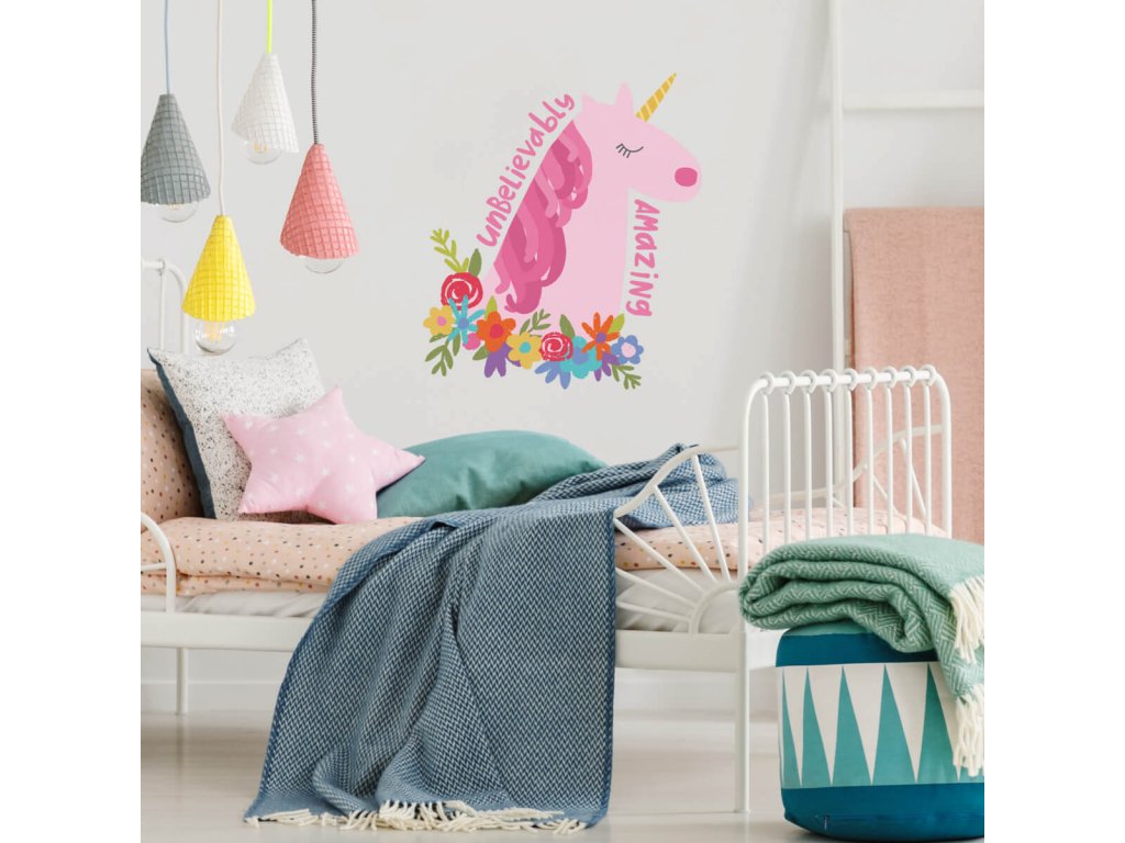 Samolepka na zeď JEDNOROŽEC s květy