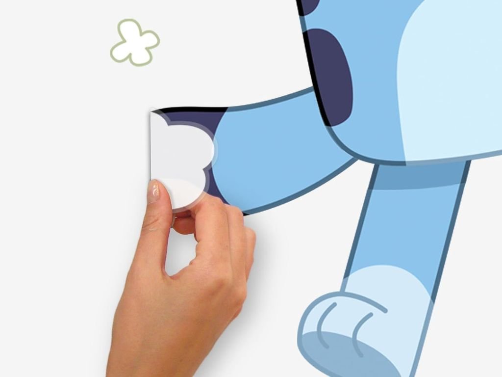 × Nelepte na čerstvě namalovanou zeď. Nejdříve proveďte test a nalepte menší díl samolepky na nenápadné místo na zdi.