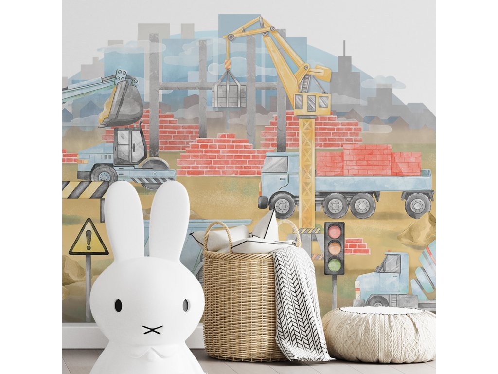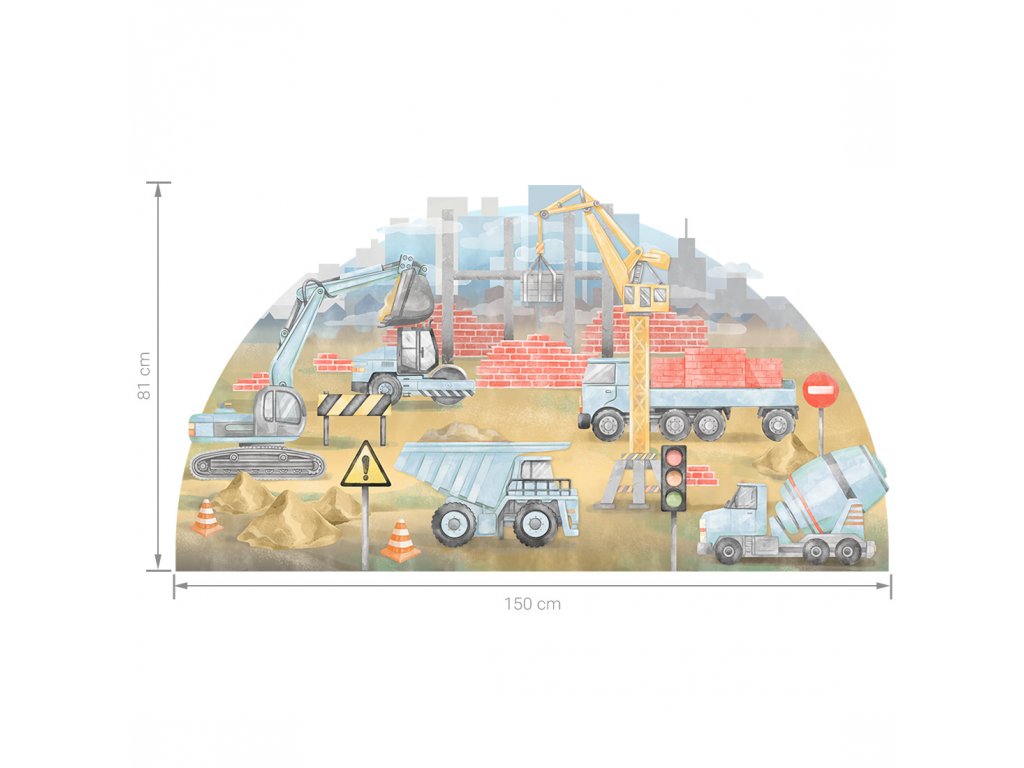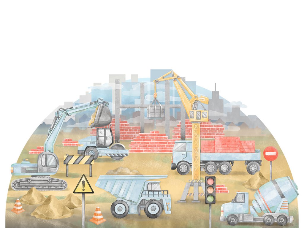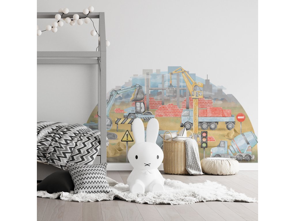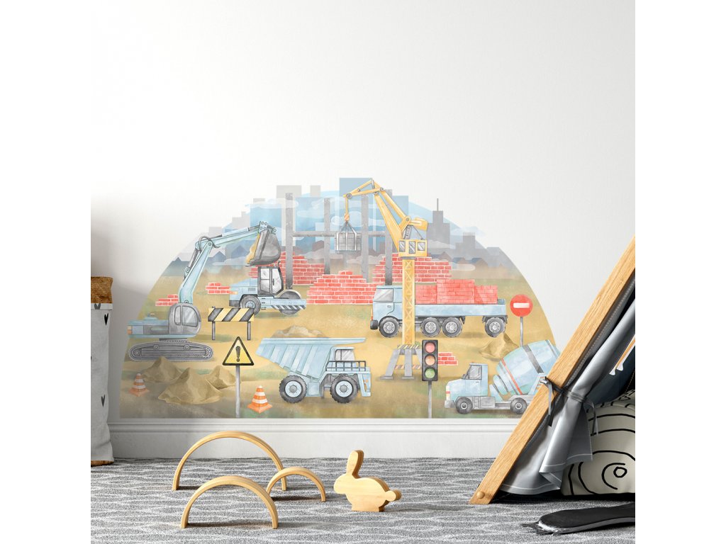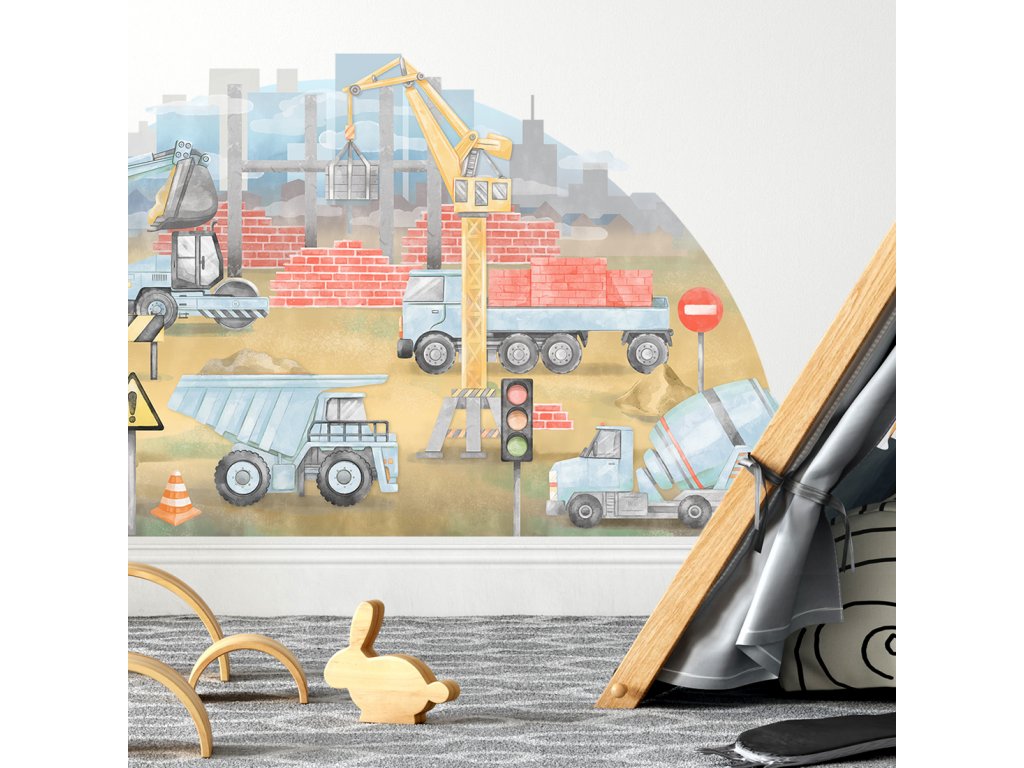 Samolepka na zeď STAVENIŠTĚ do dětského pokoje modrá