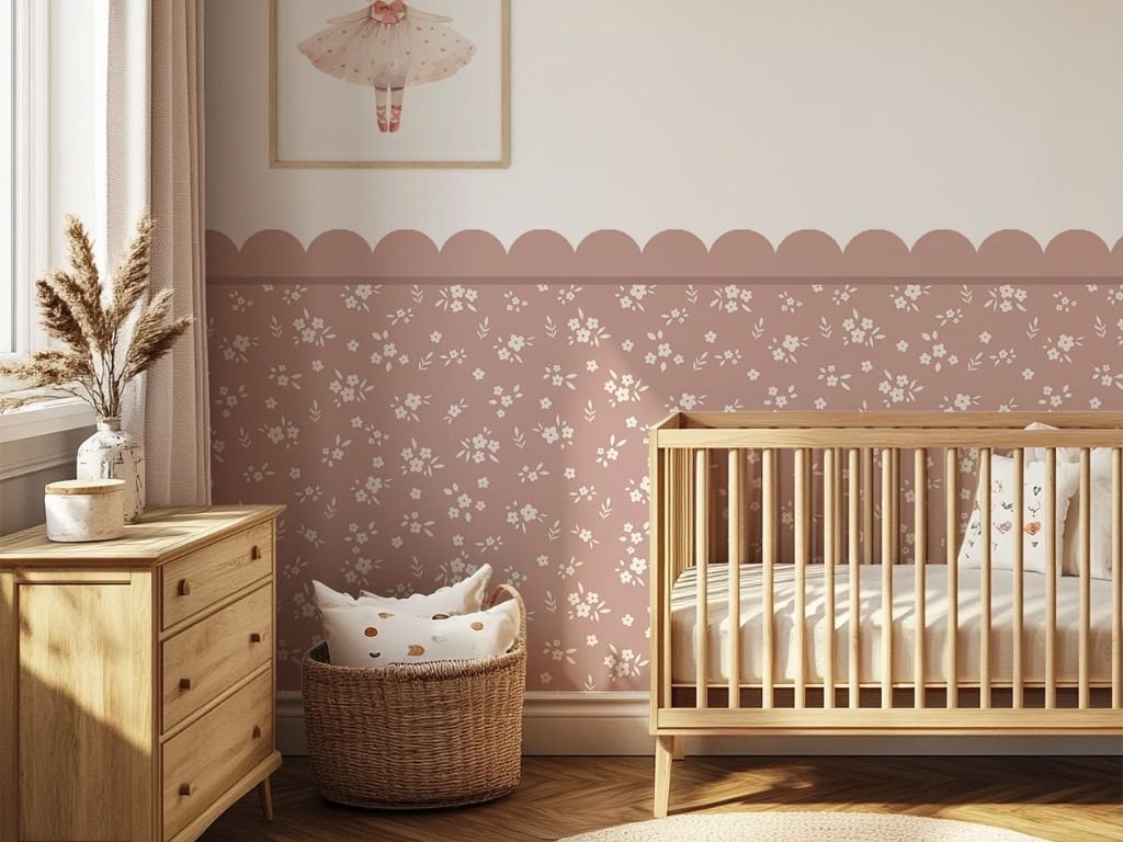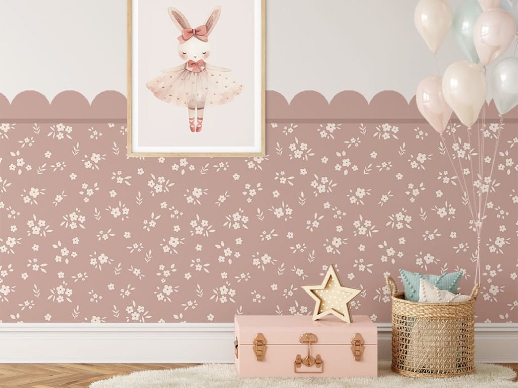 Samolepka NÁSTĚNNÝ PANEL do dětského pokoje KVĚTY růžová