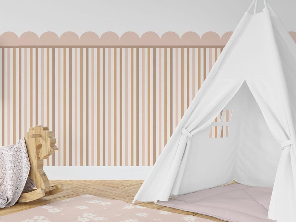 Samolepka NÁSTĚNNÝ PANEL do dětského pokoje PROUŽKY béžová