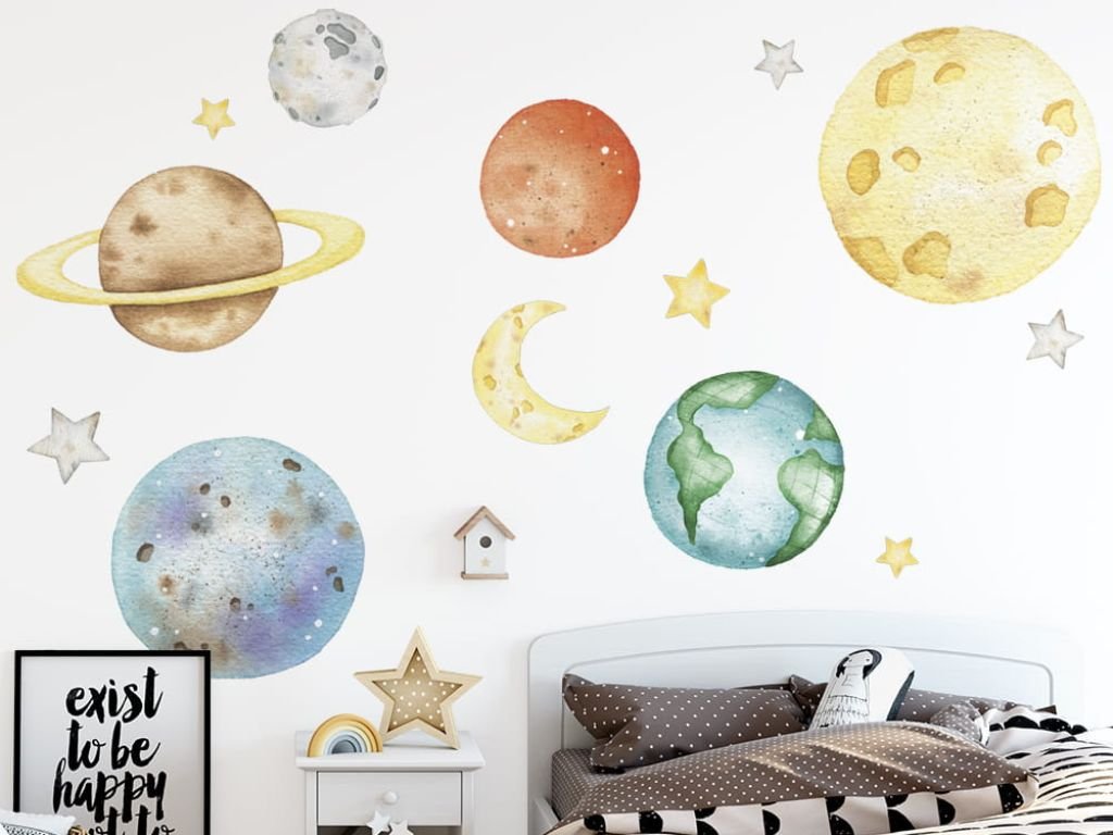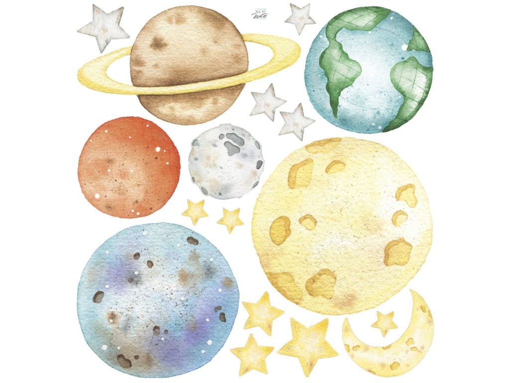 | Rozměr planet: | 50x49 cm (žlutá), 44x42 cm (modrá), 35x35 cm (Země), 61x33 cm (Saturn), 28x28 cm (Mars), 21x21 cm (šedá) |