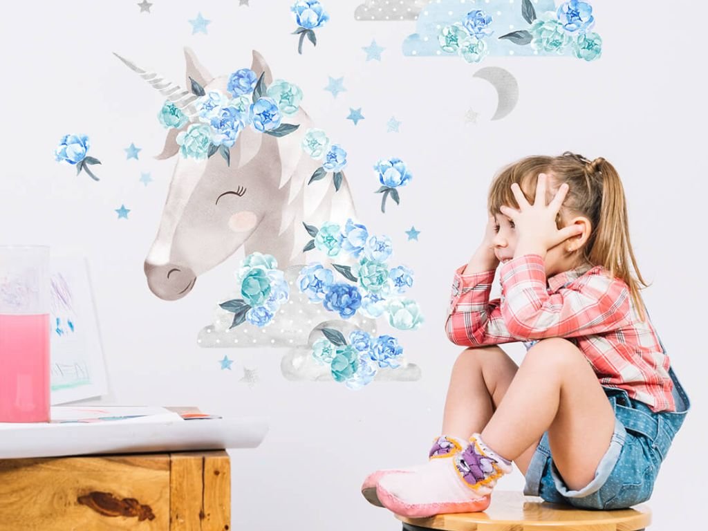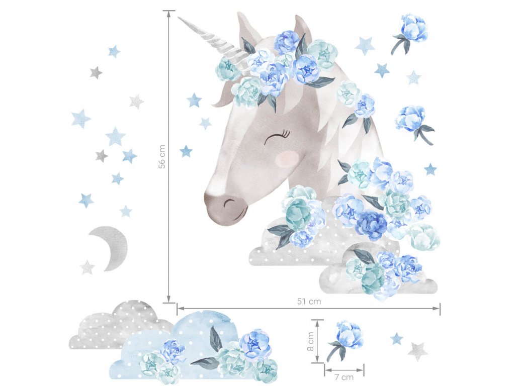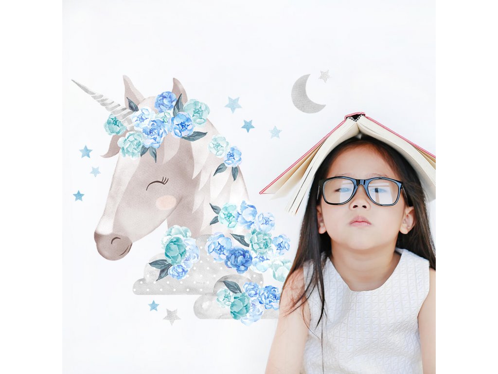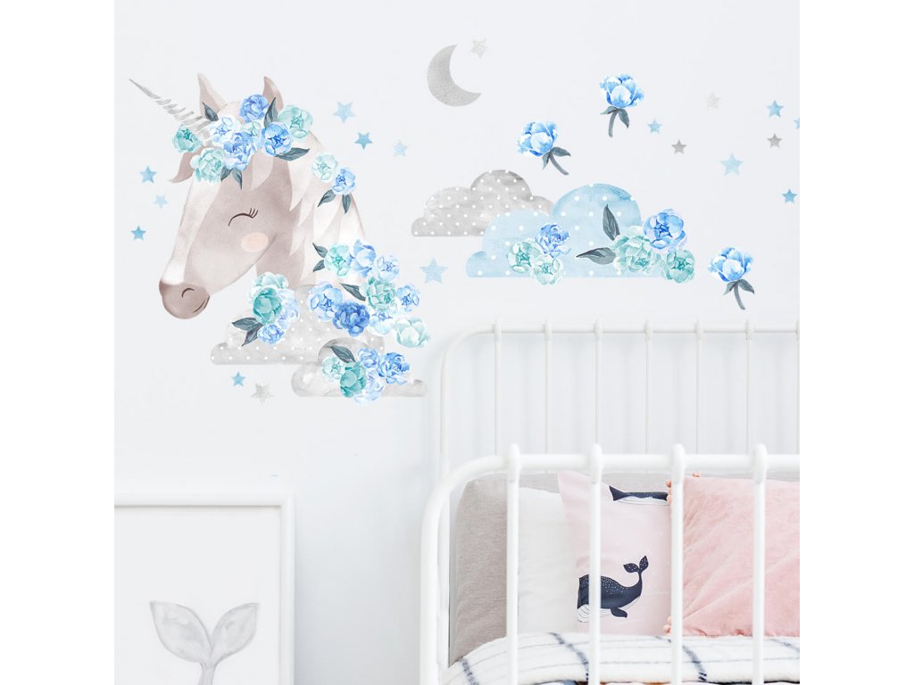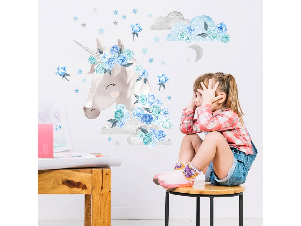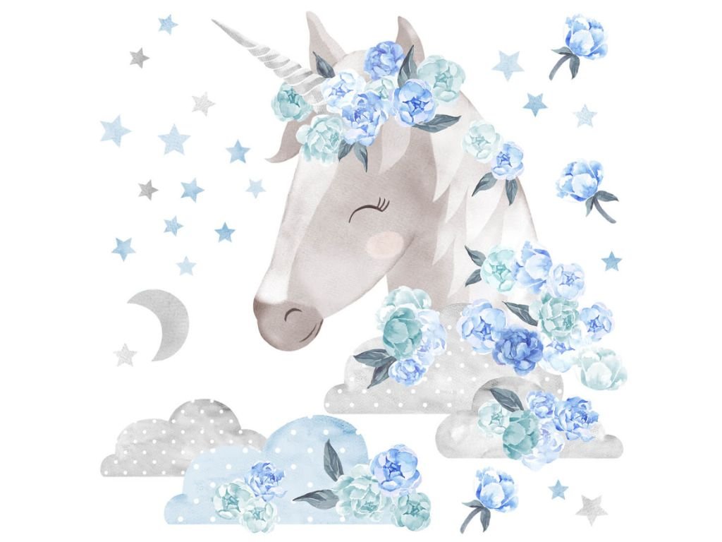 Samolepky JEDNOROŽEC do dětského pokoje MODRÝ