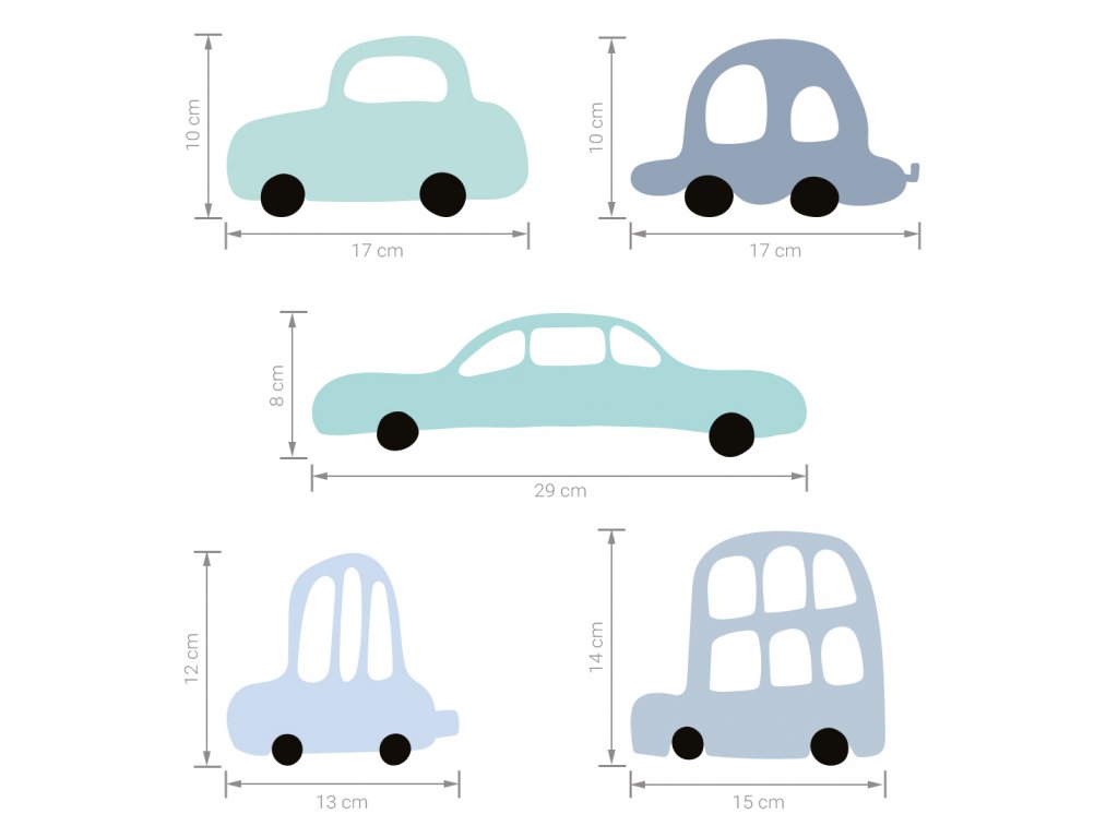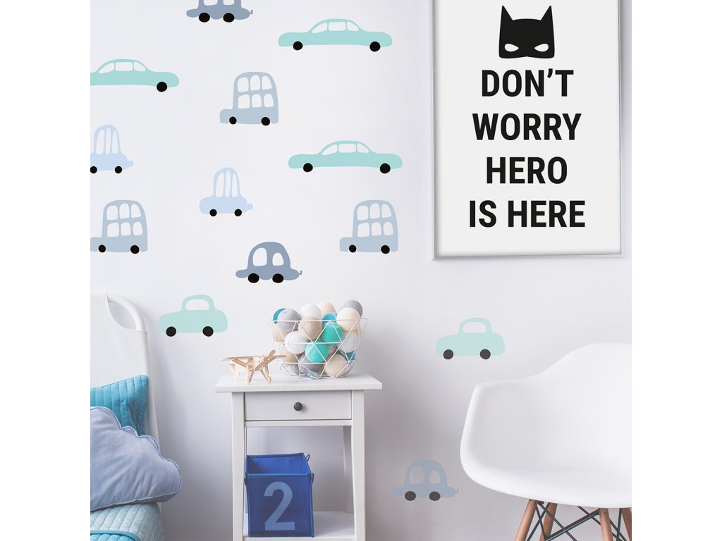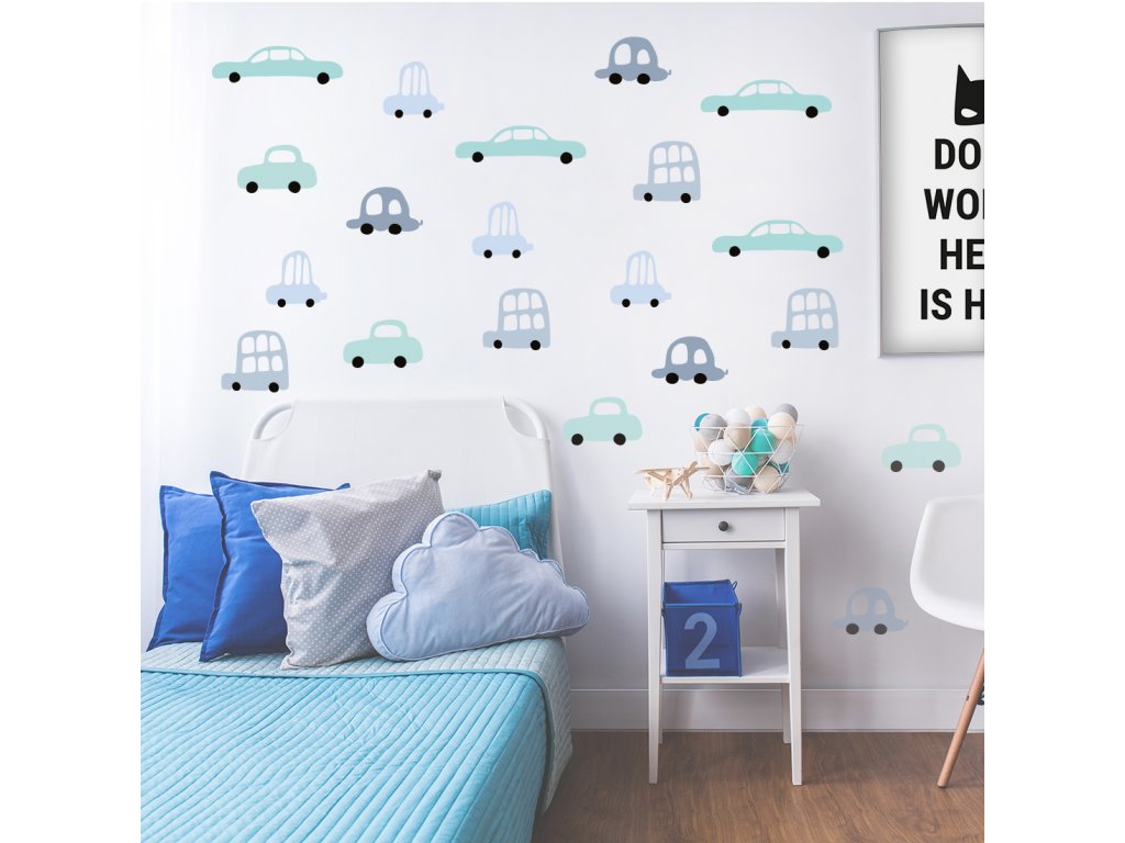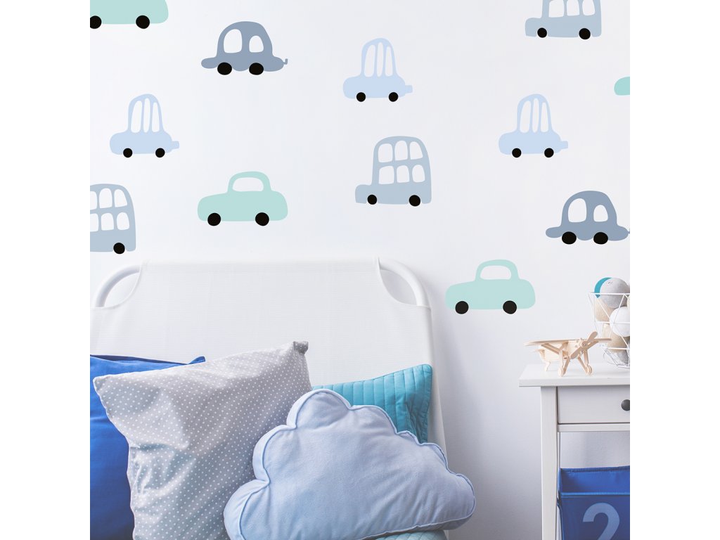 Samolepky na stěnu AUTA do dětského pokoje MODRÉ
