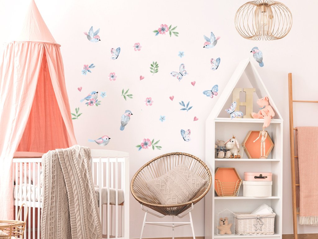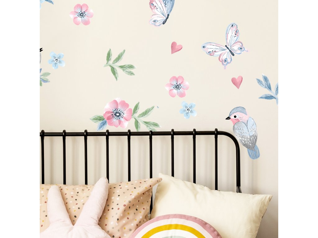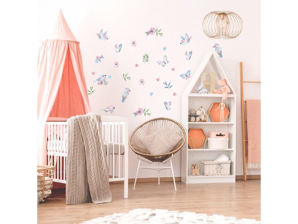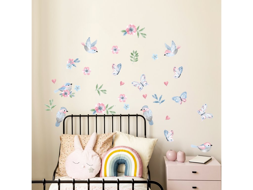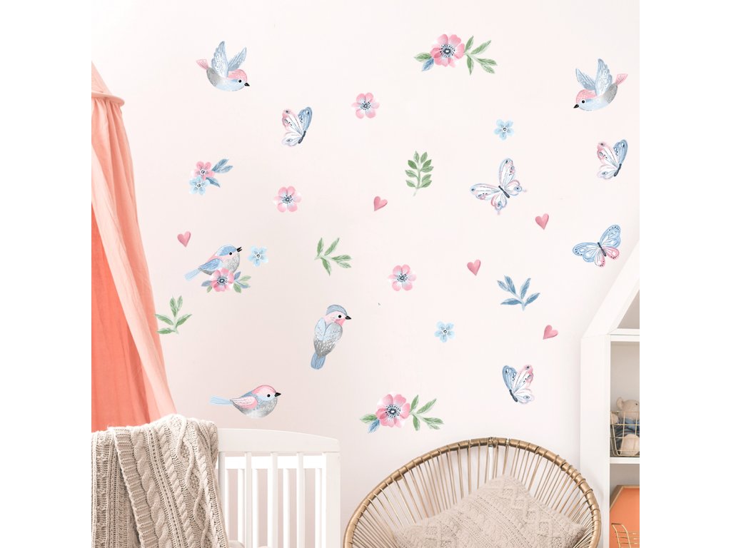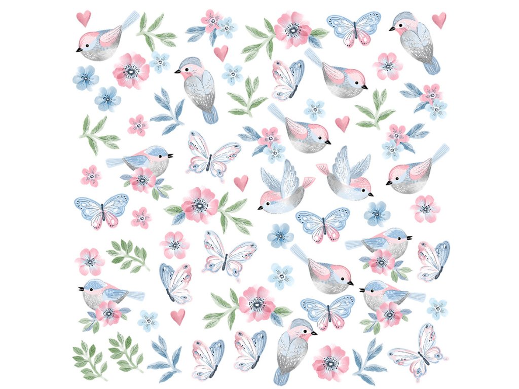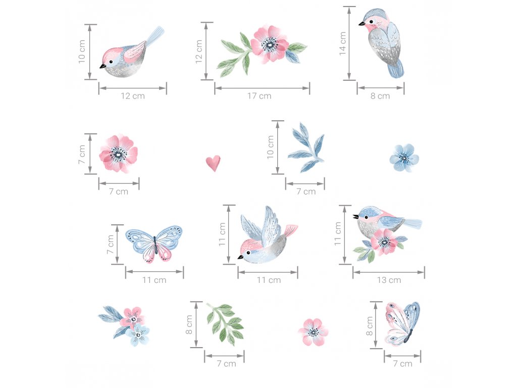 | Sada obsahuje: | 14 ptáčků, 12 motýlů, 28 květin, 10 větviček, 6 srdíček |