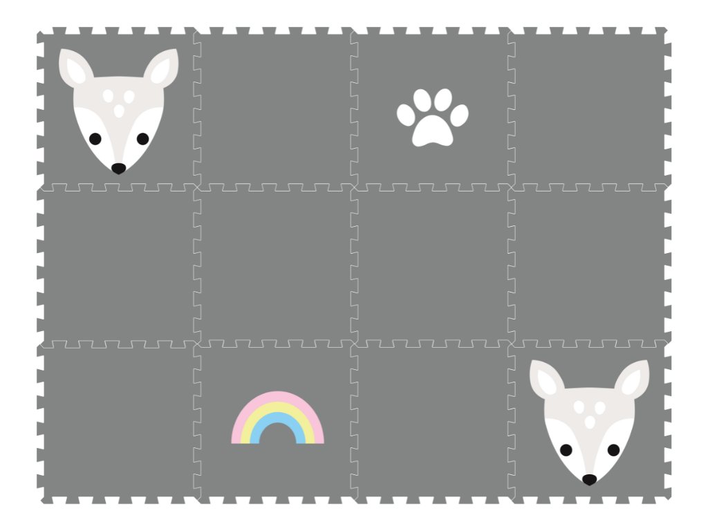 | Sada obsahuje: | 12 podlahových dílů (8 ks šedý, 2 ks šedý se světle šedým kolouškem, 1 ks šedá duha, 1 ks šedý s bílou tlapkou) |